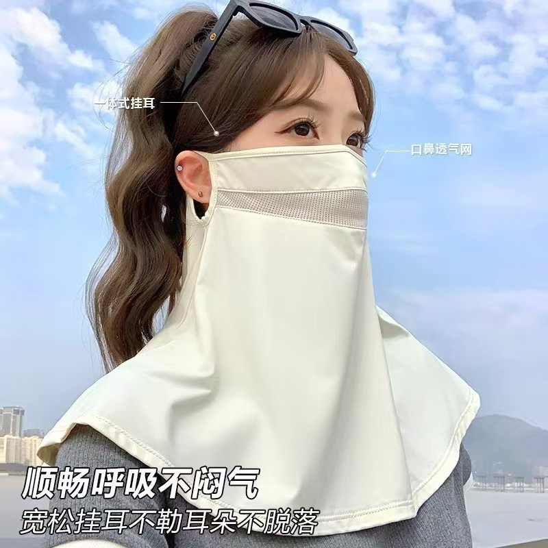 夏季女防晒冰丝面罩透气脸基尼户外防紫外线半脸面纱骑行遮阳面纱