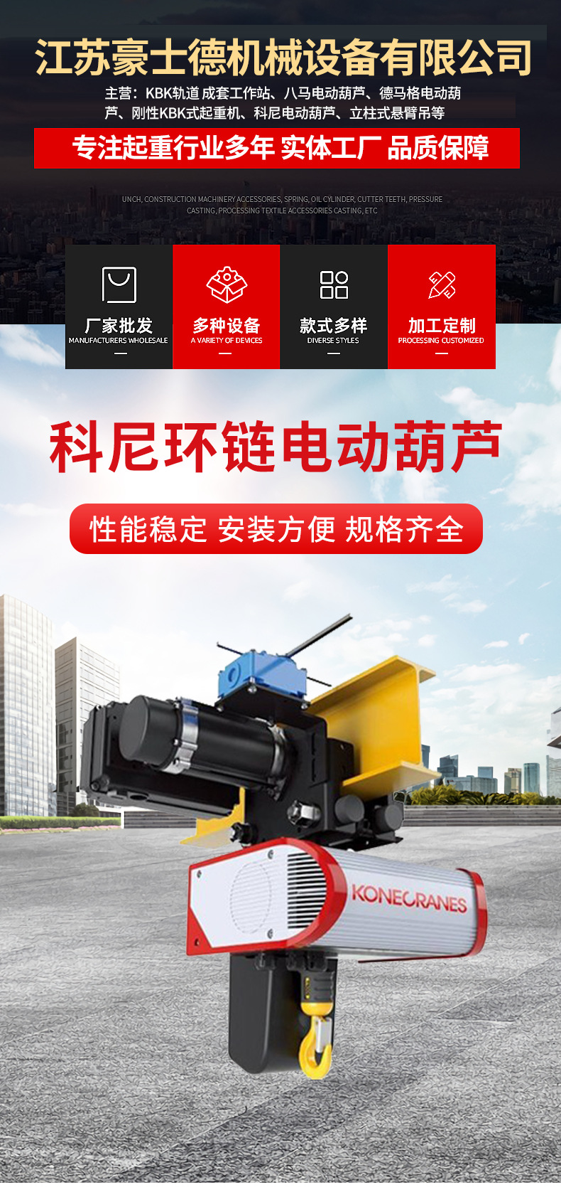 科尼环链电动葫芦科尼钢丝绳葫芦 工厂重型货物搬运专用