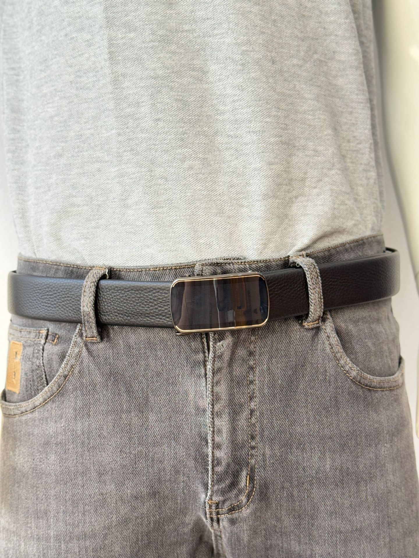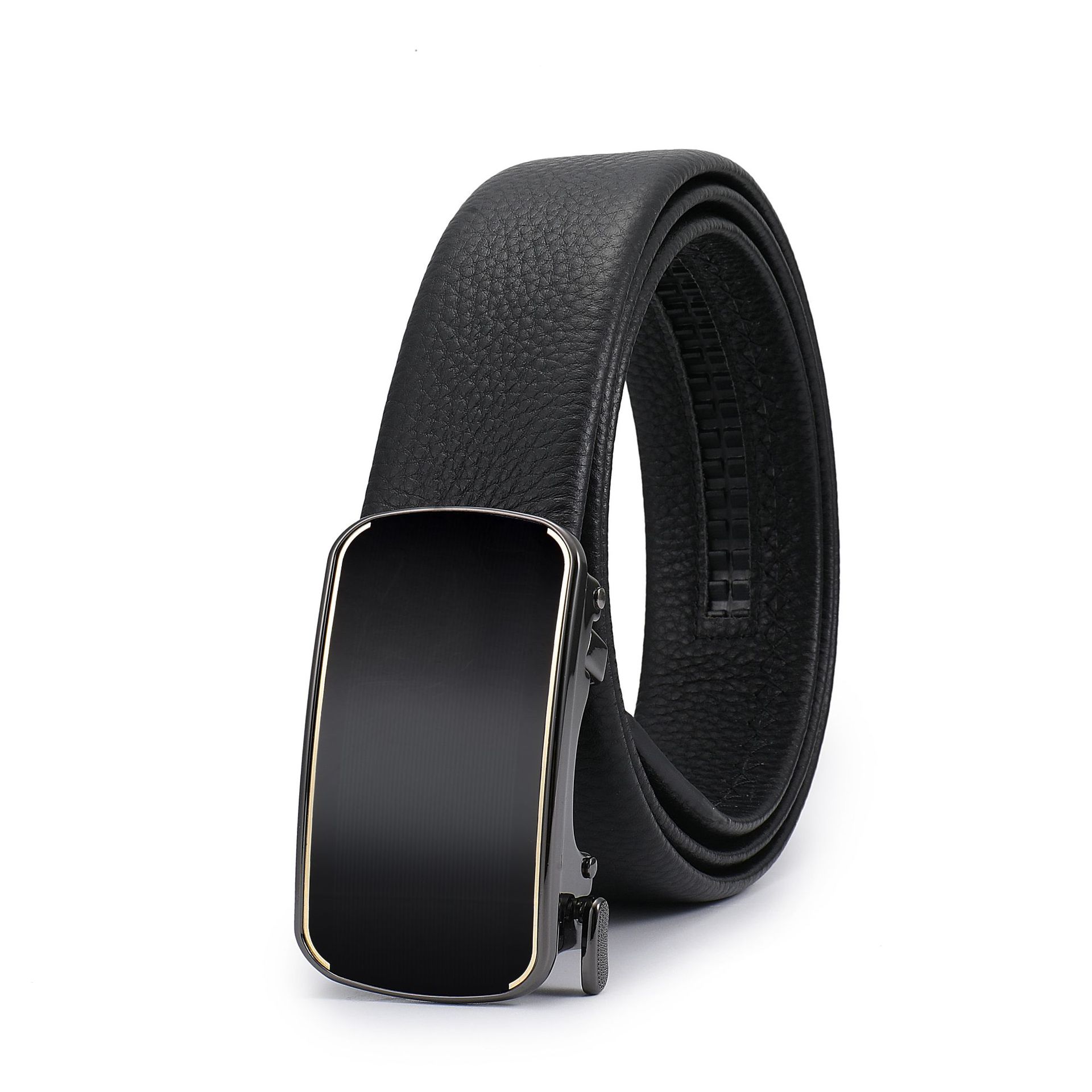 新头层牛皮自动扣皮带3.6CM荔枝纹腰带真皮跨境外贸广州工厂批发