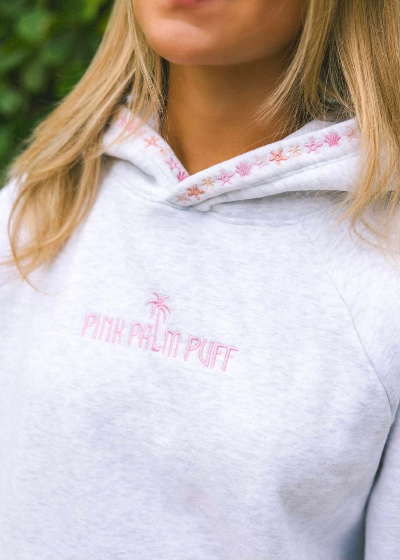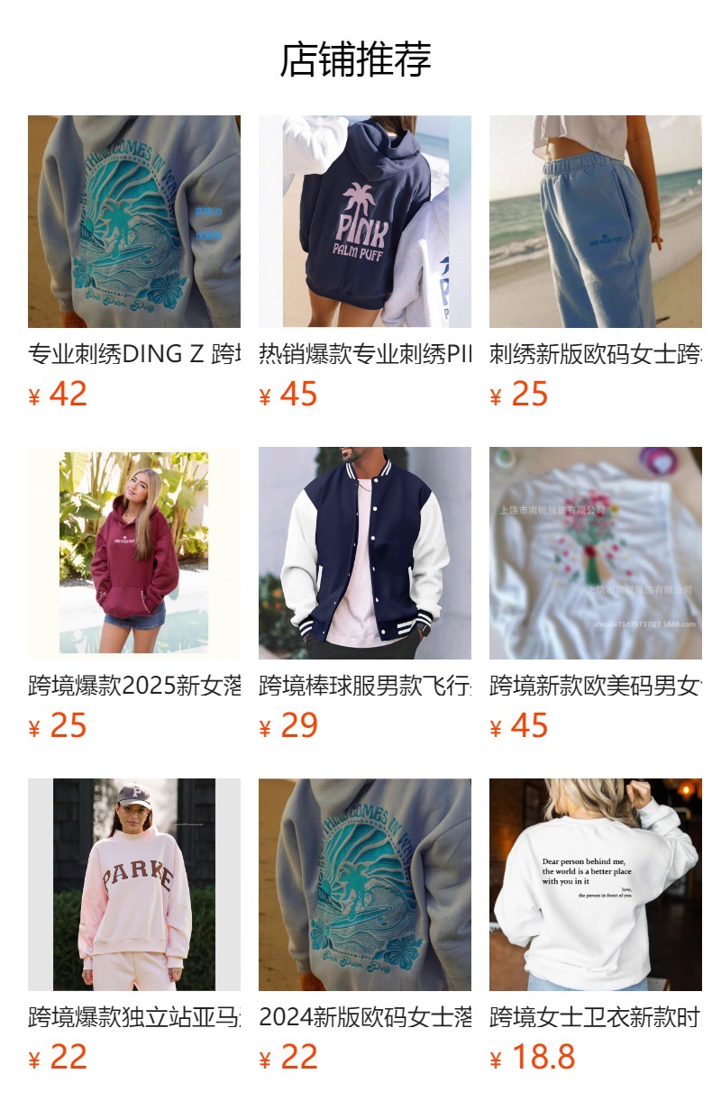 推荐理由:热销爆款专业刺绣PINK PALM PUFF新款跨境欧码落肩袖连帽刺绣卫衣