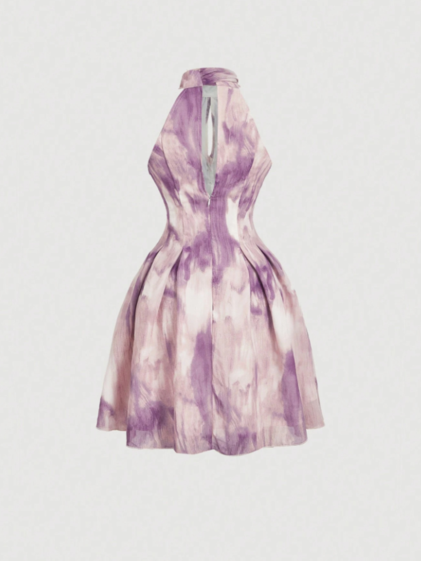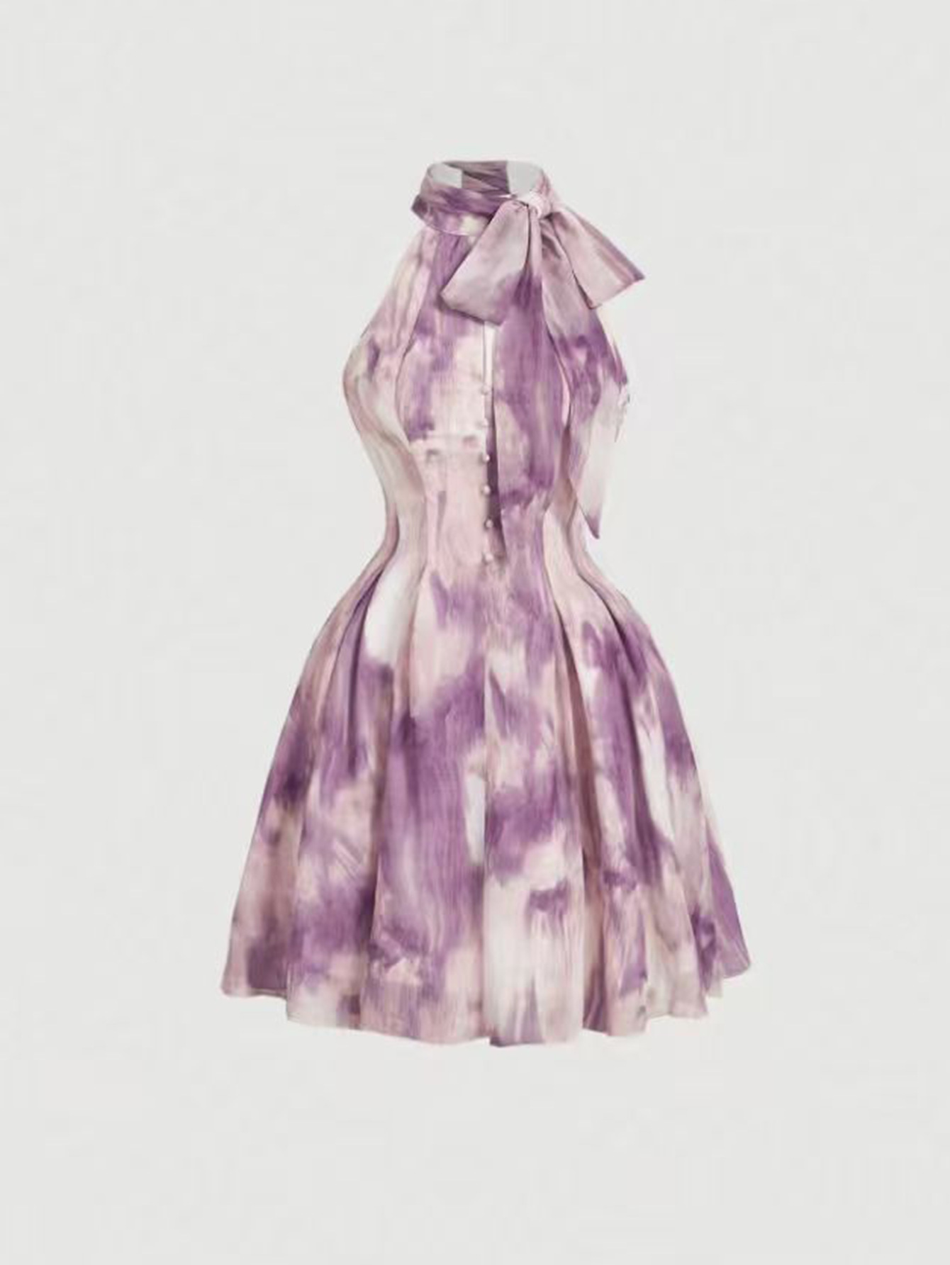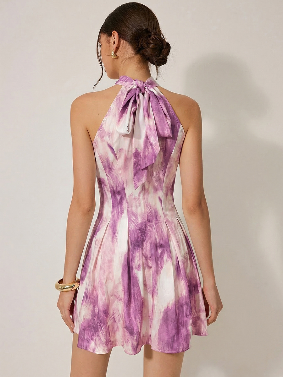 2026春夏跨境亚马逊欧美时尚无袖连衣裙 外贸气质挂脖A字裙中裙女