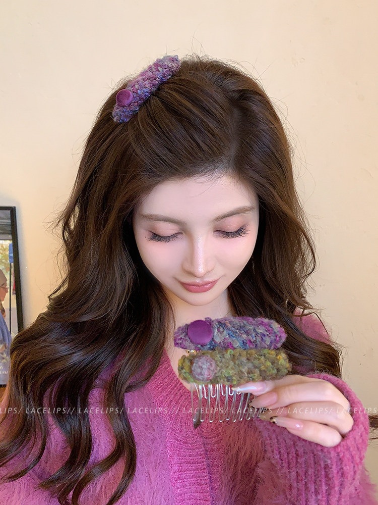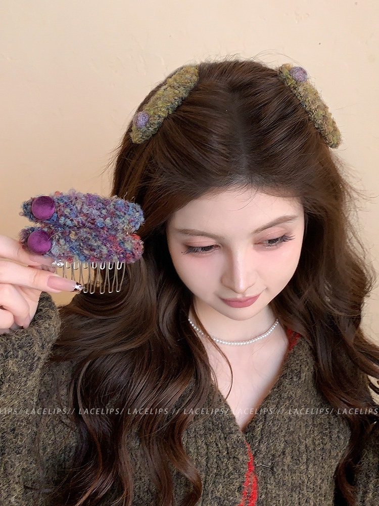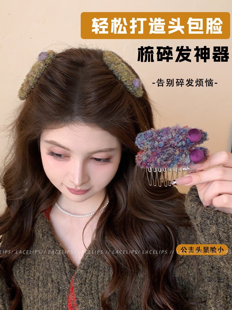 彩色毛绒圆球倒插梳发夹女碎发神器刘海夹子高颅顶显脸小发头饰