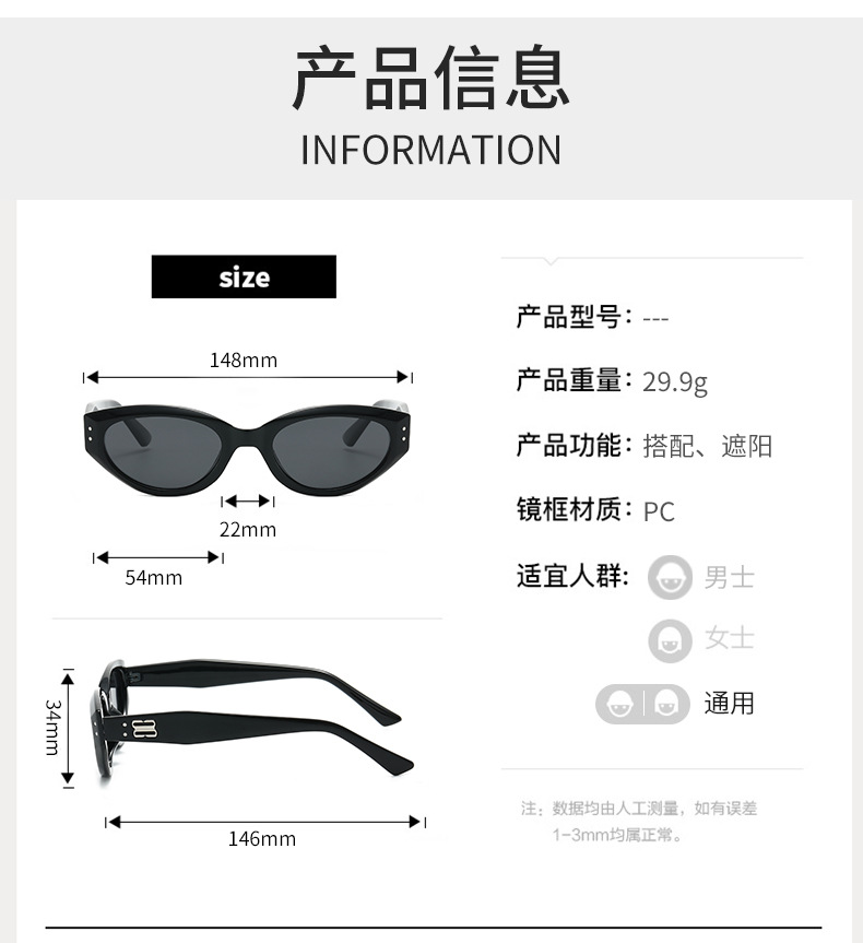 2023新款韩版黑色猫眼墨镜女潮小脸凹造型眼镜遮阳ins街拍太阳镜,批发价,价格:5.5,厂家直销,2023新款韩版黑色猫眼墨镜女潮小脸凹造型眼镜遮阳ins街拍太阳镜,免费拿样。