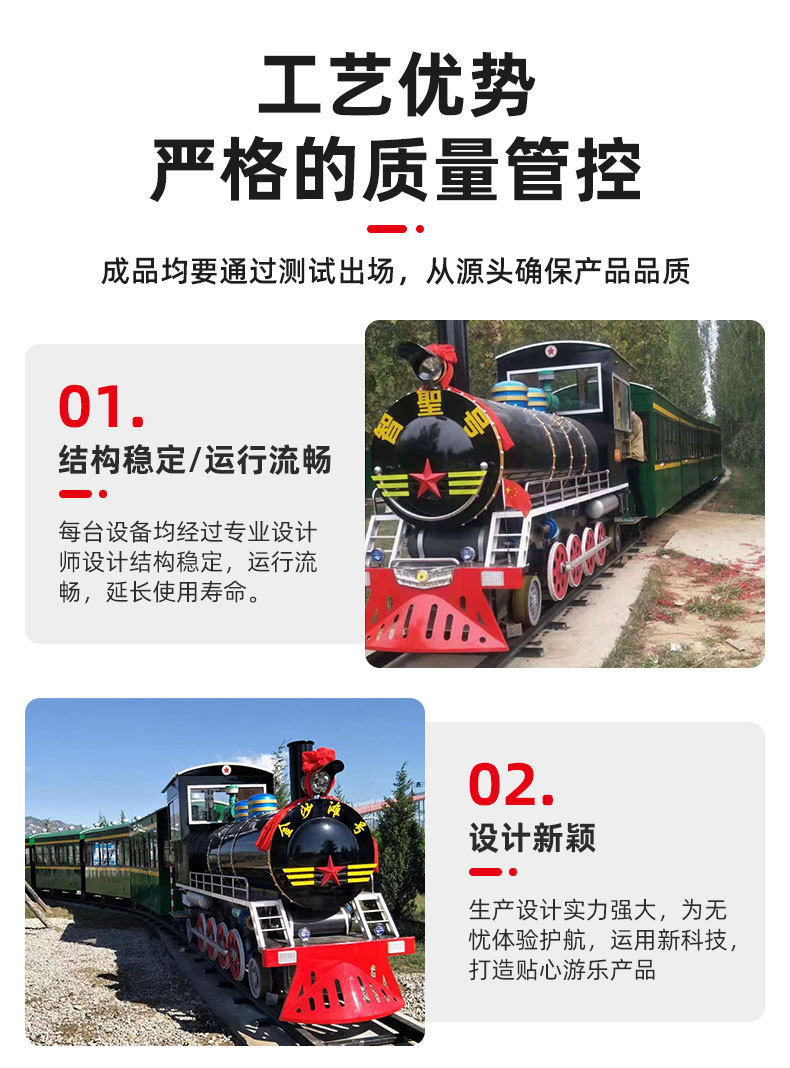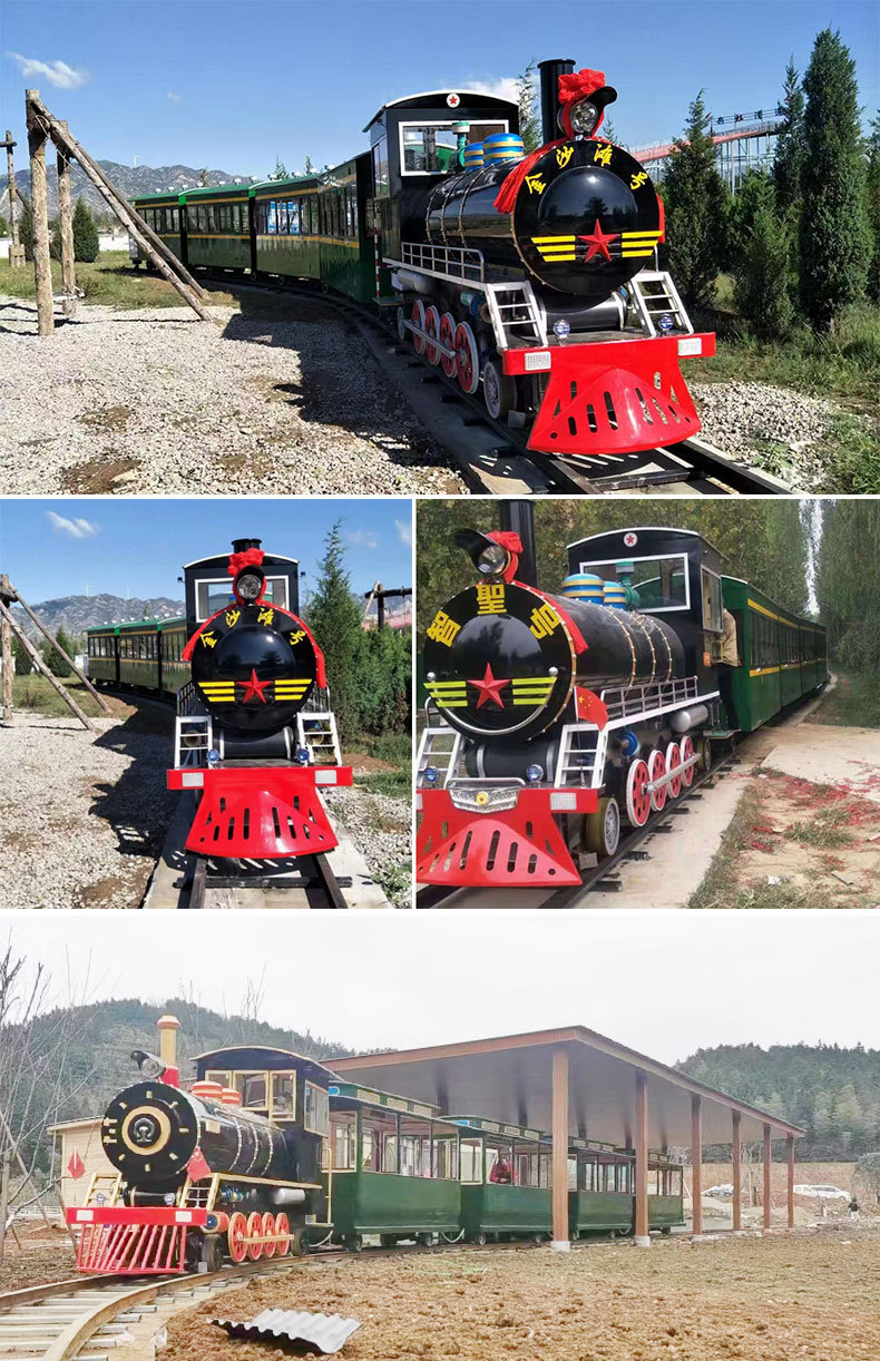 网红景区观光轨道小火车游乐设备户外公园电动蒸汽有轨火车可坐人