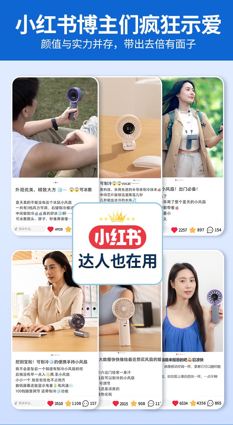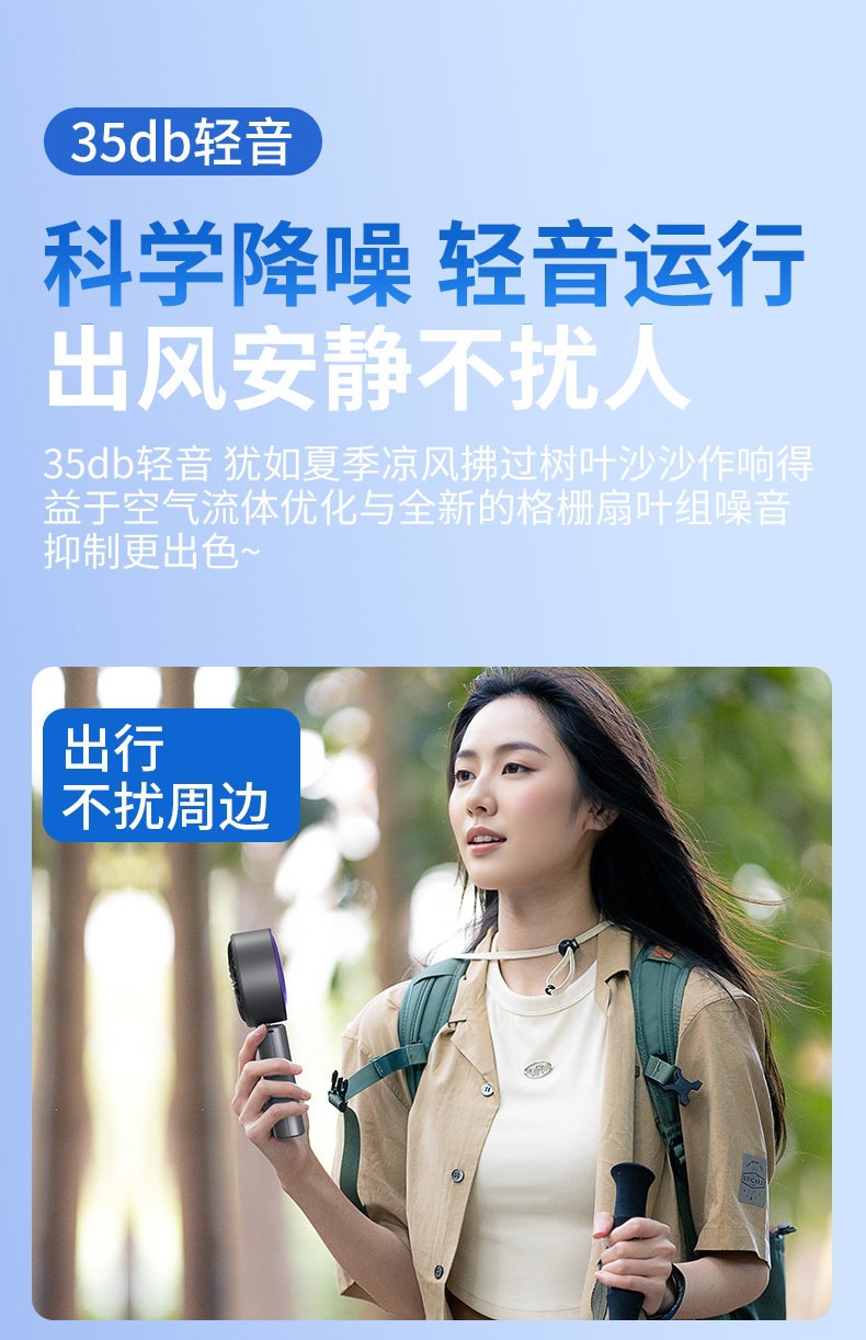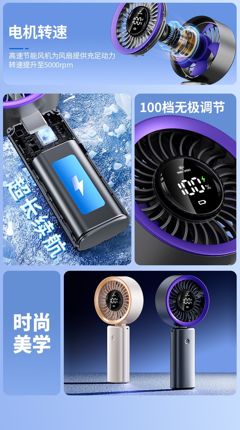 百档冷风手持小风扇,静音迷你、USB 充电续航久,随身便携超适合夏日出行