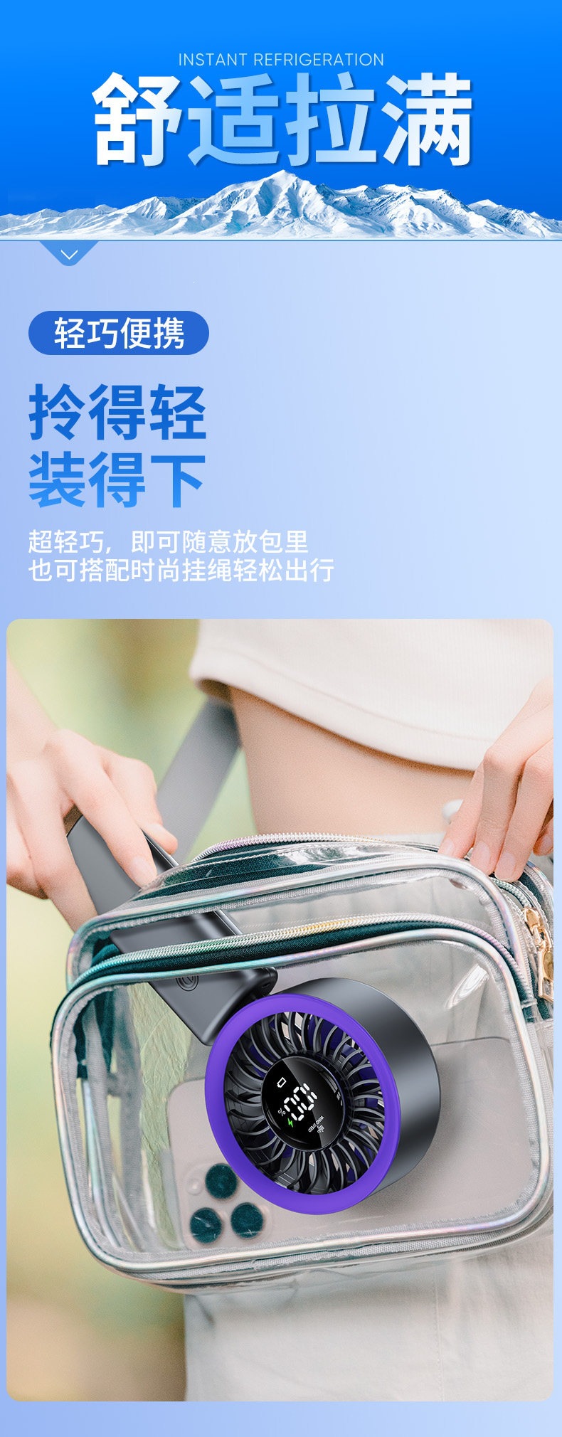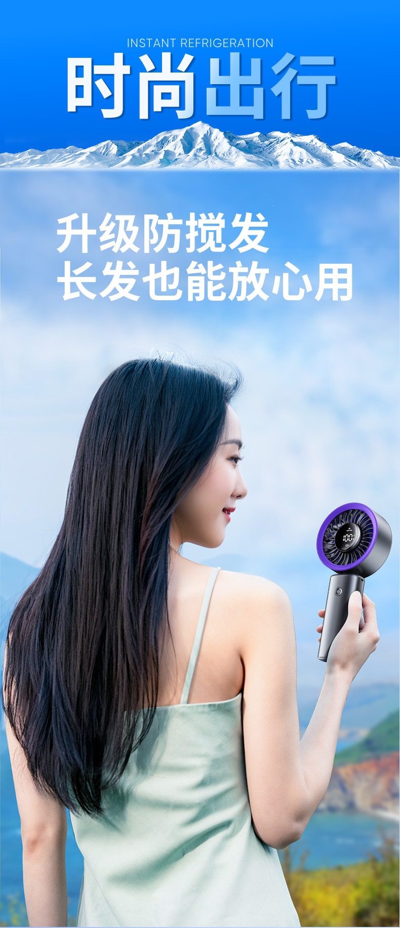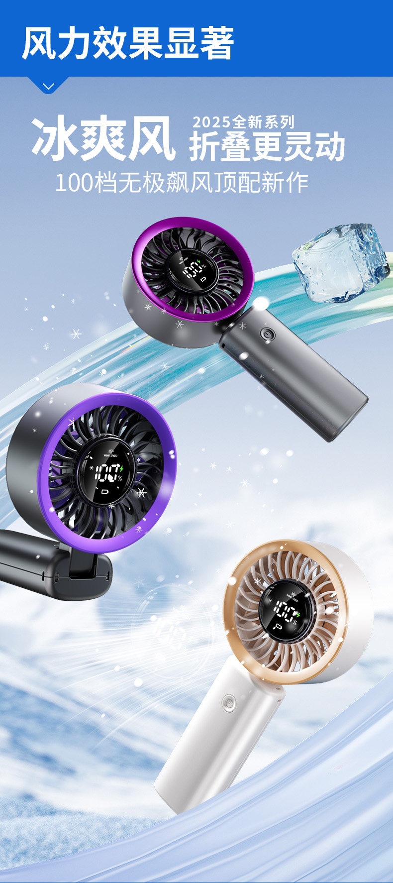 百档冷风手持小风扇,静音迷你、USB 充电续航久,随身便携超适合夏日出行