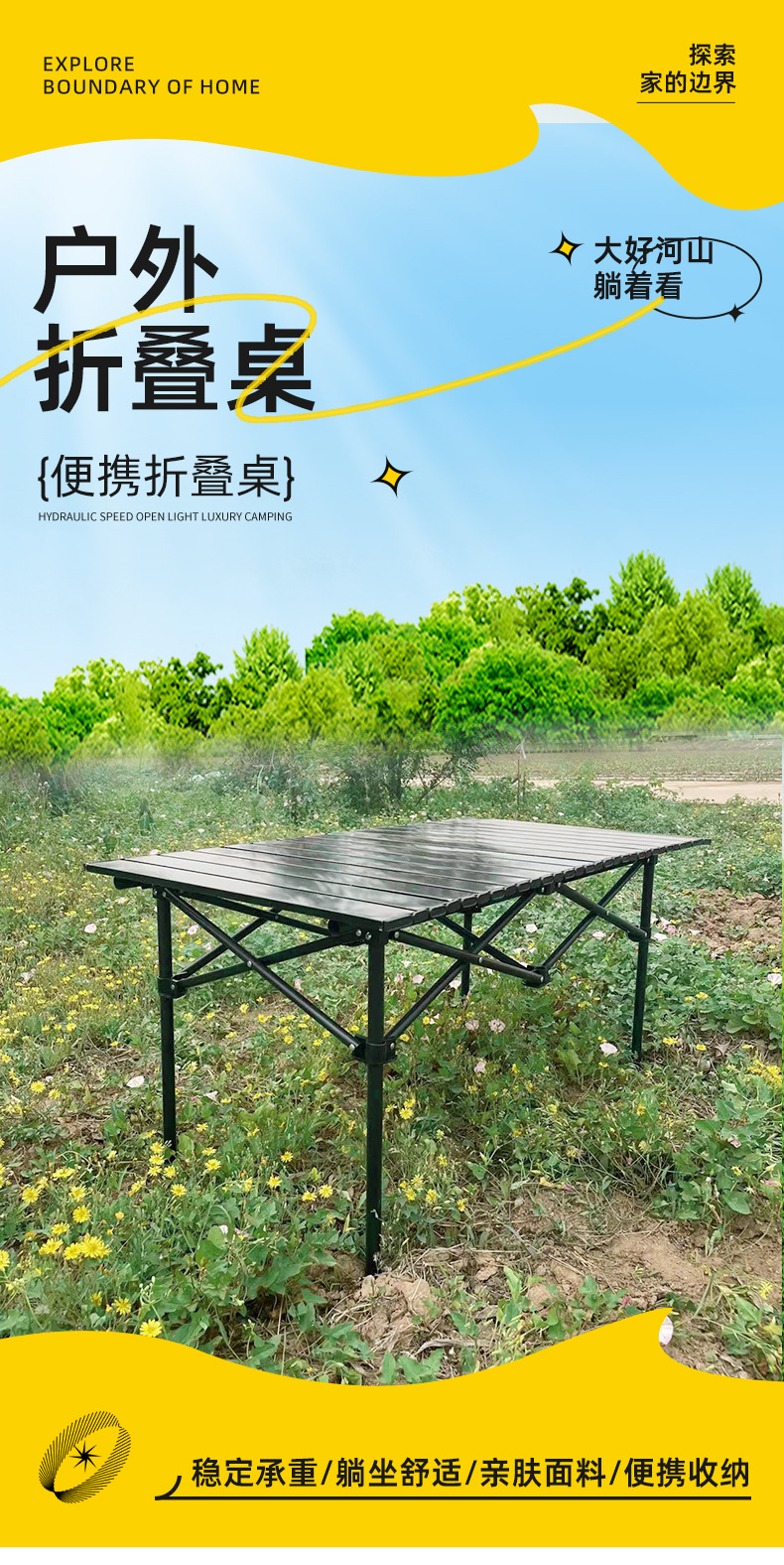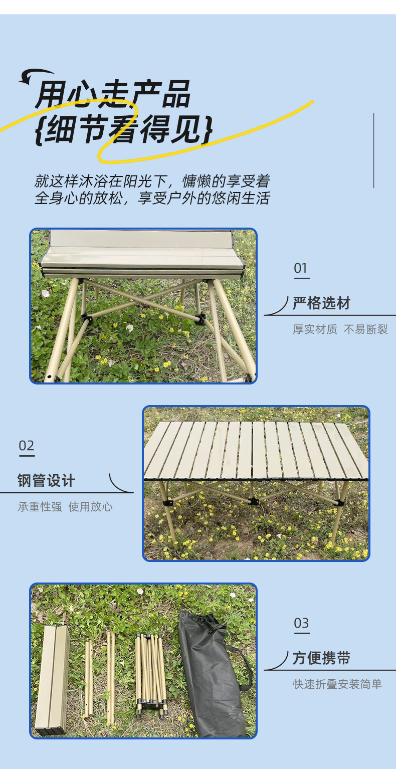 厂家批发户外折叠蛋卷桌露营野外餐桌训练营便携收纳金属折叠桌