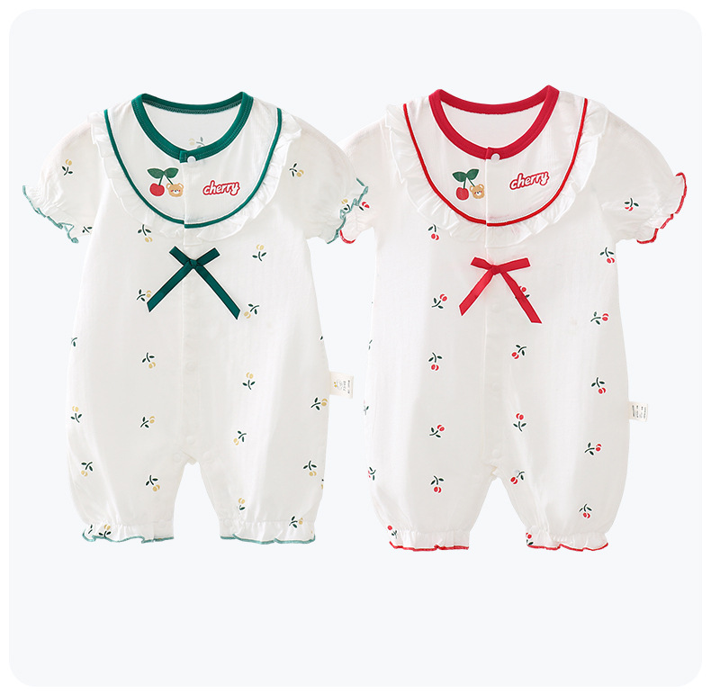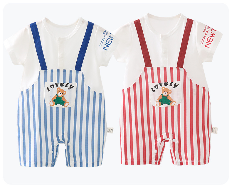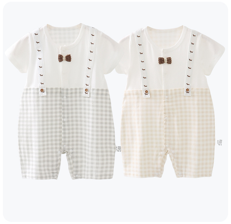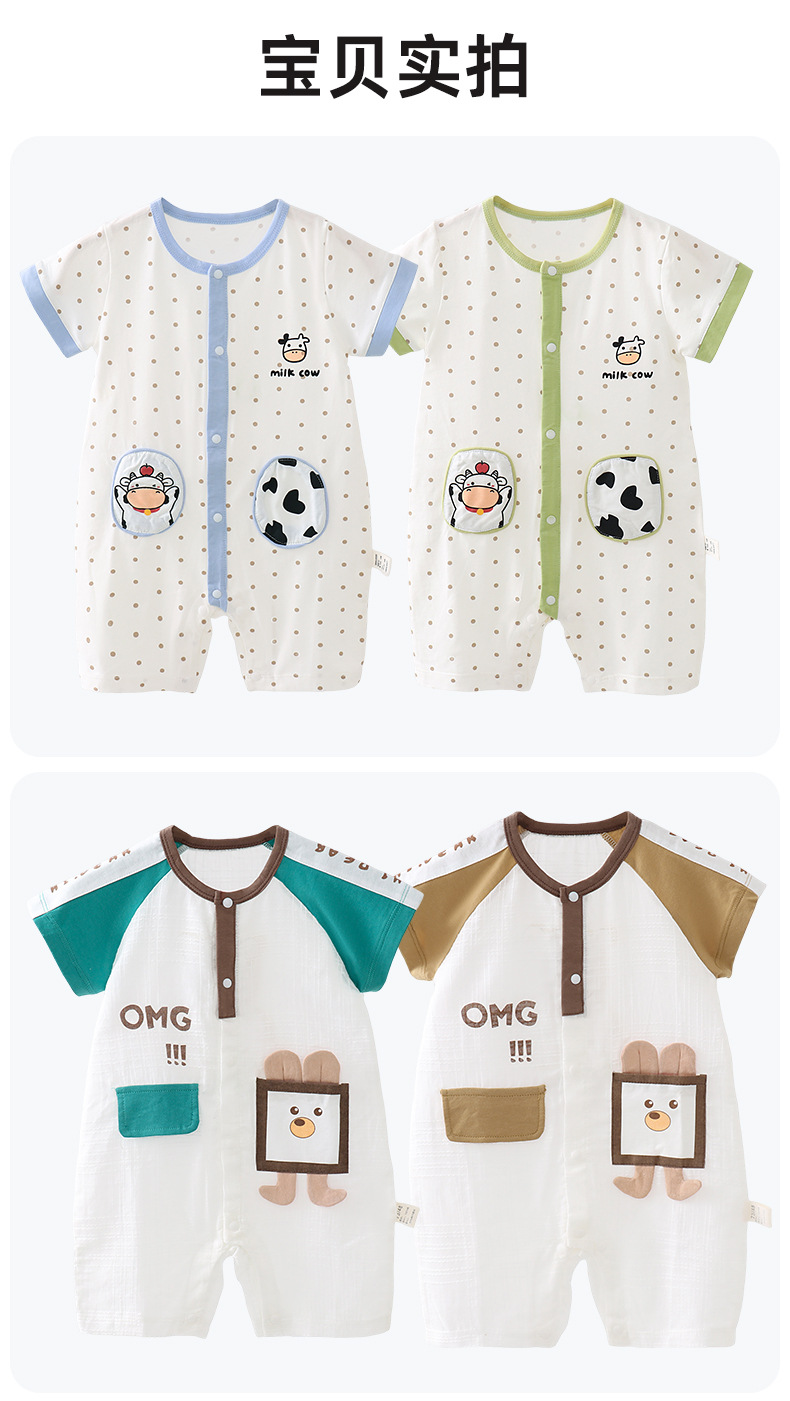 【全网热销】婴儿连体衣夏季薄男女宝宝短袖哈衣婴幼儿外出爬爬服
