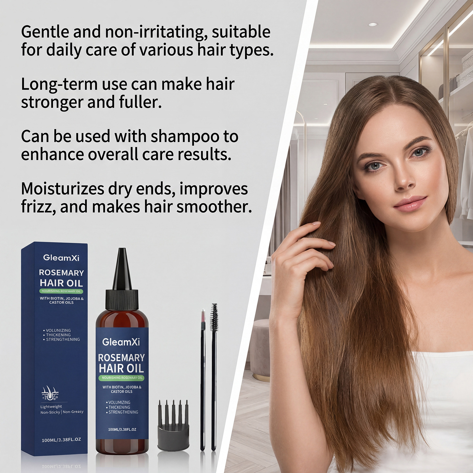 Gleamxi迷迭香滋润护发油 清爽水润柔顺发丝轻盈蓬松自然细腻光泽