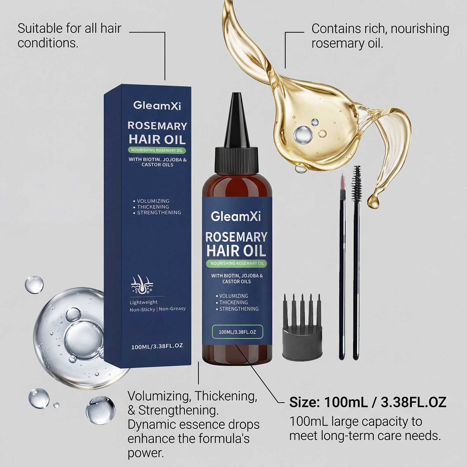 Gleamxi迷迭香滋润护发油 清爽水润柔顺发丝轻盈蓬松自然细腻光泽,批发价,价格:8,厂家直销,Gleamxi迷迭香滋润护发油 清爽水润柔顺发丝轻盈蓬松自然细腻光泽,免费拿样。