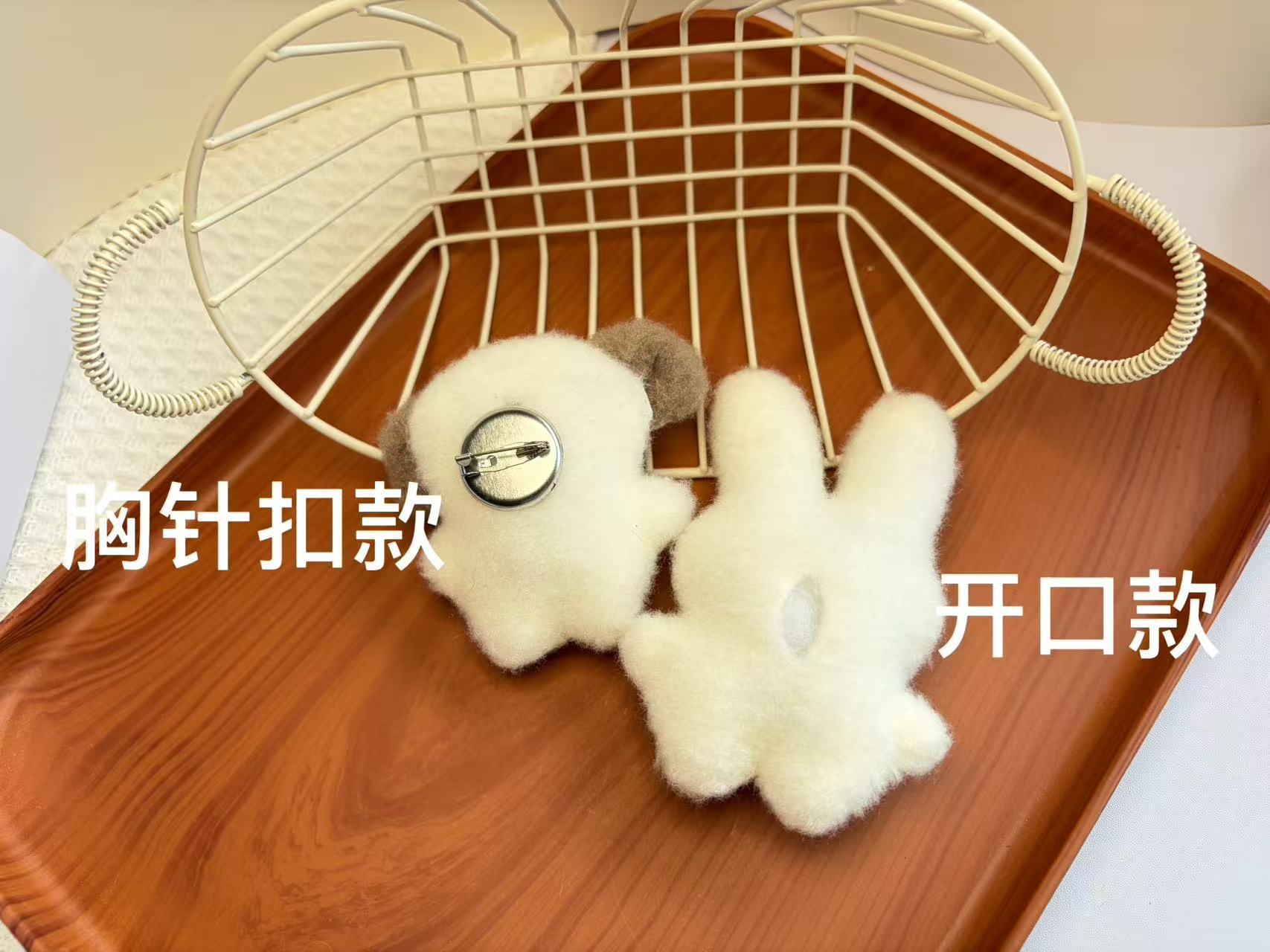 厂家直销 闭眼兔子小狗毛呢刺绣胸针 挂饰 挂件 可爱卡通饰品