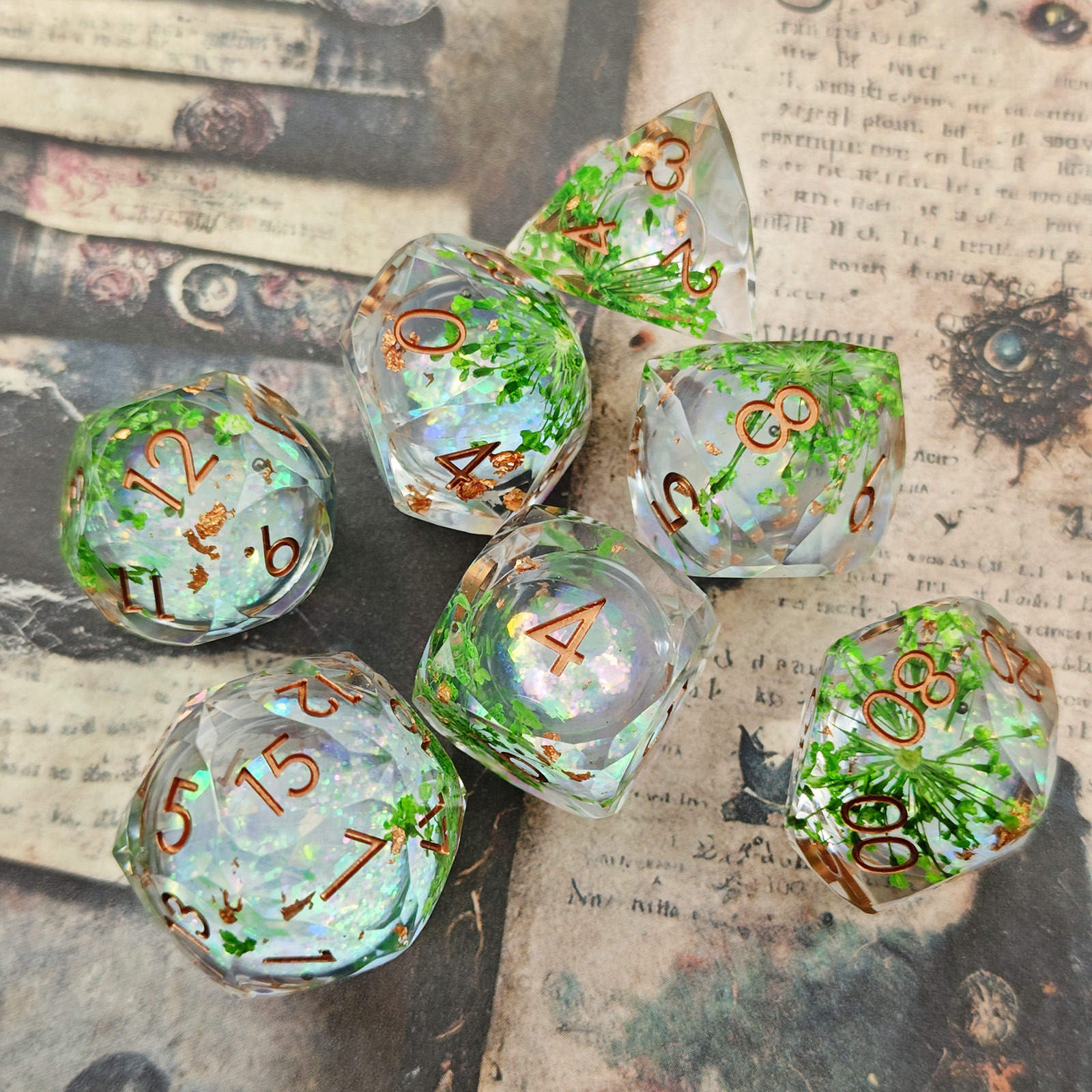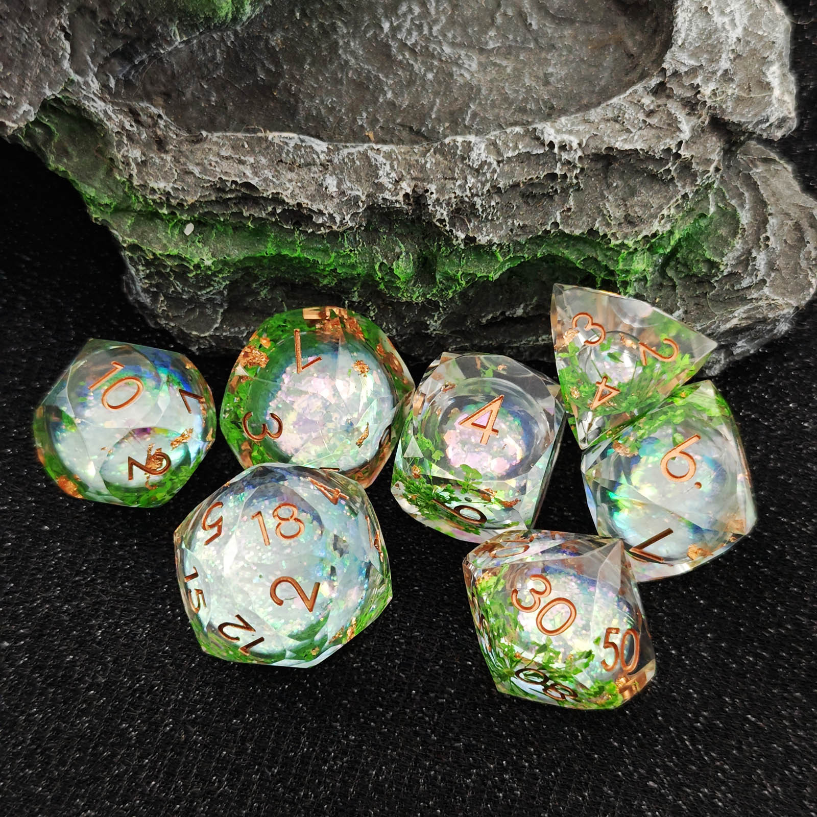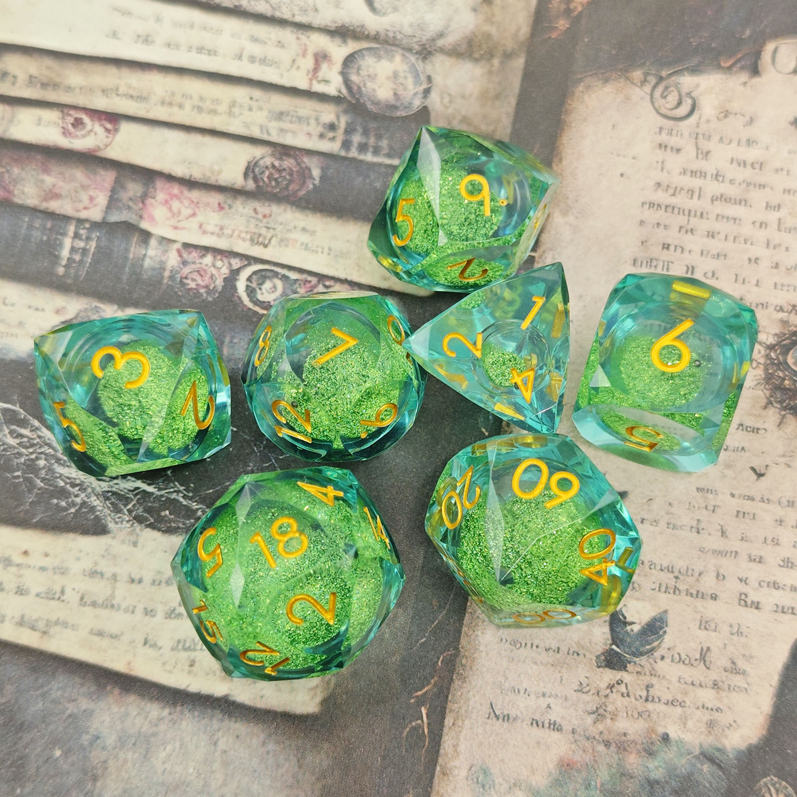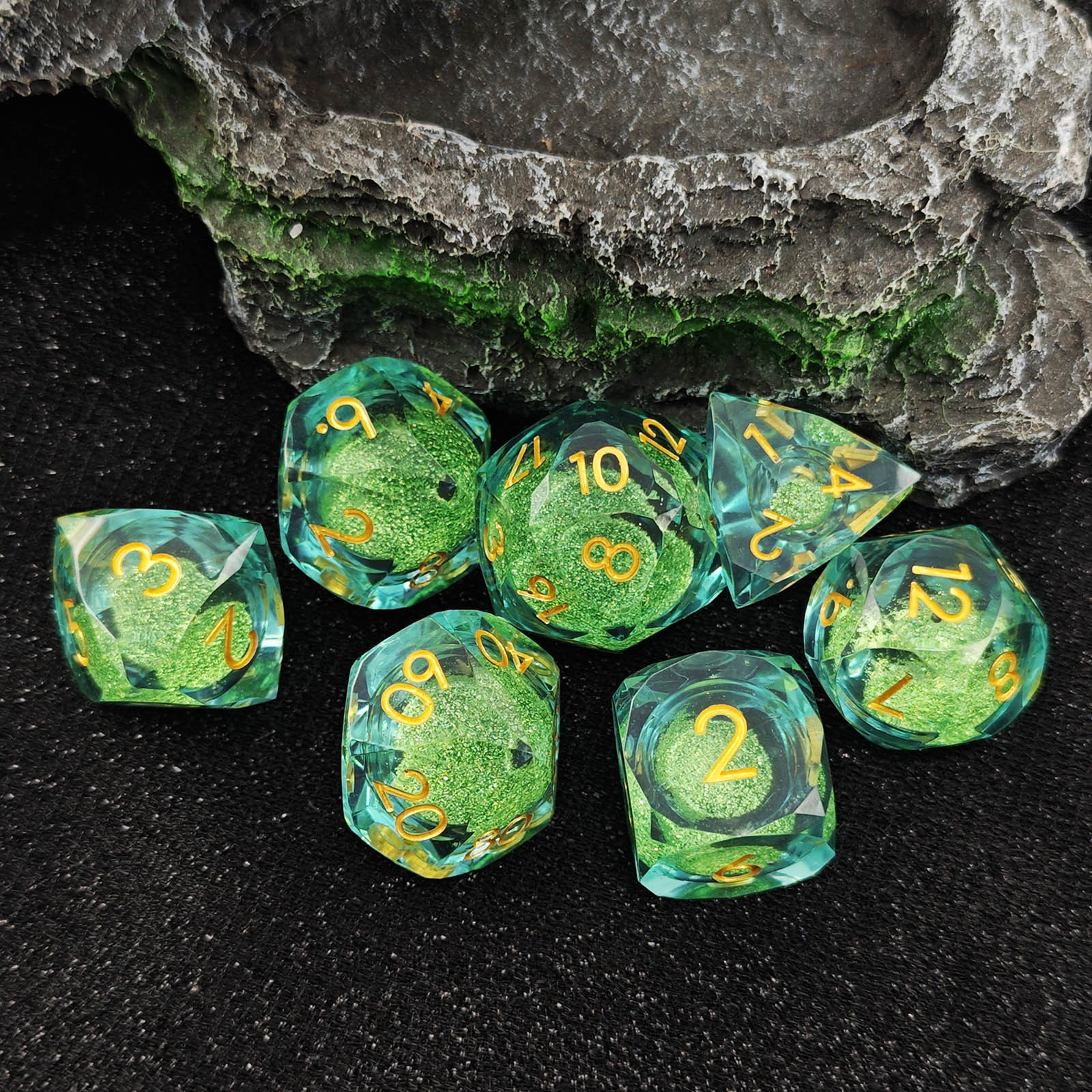 流沙骰子 树脂骰子 多切骰子 锋利面骰子 D20 绿草骰子