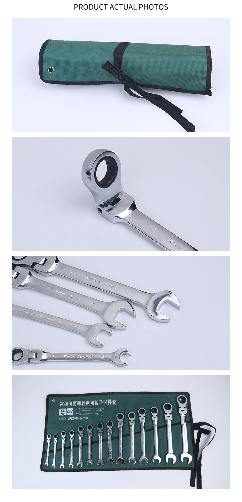 厂家生产棘轮扳手省力快速梅花双向万能两用扳手帆布袋套装
