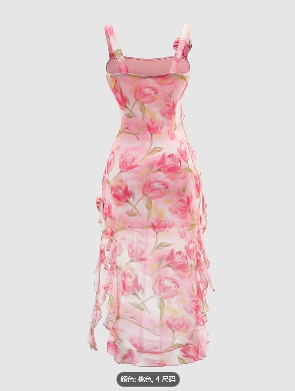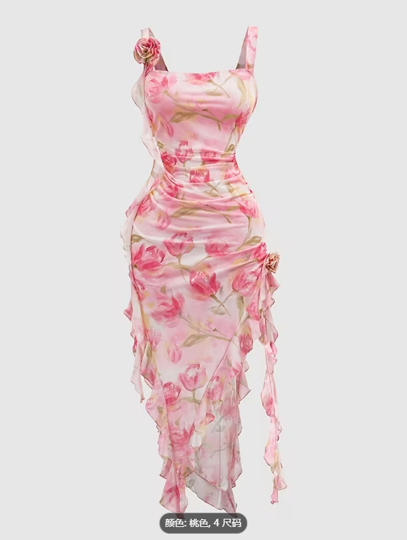 跨境亚马逊欧美女装外贸批发性感甜美度假风女士浪漫印花连衣裙