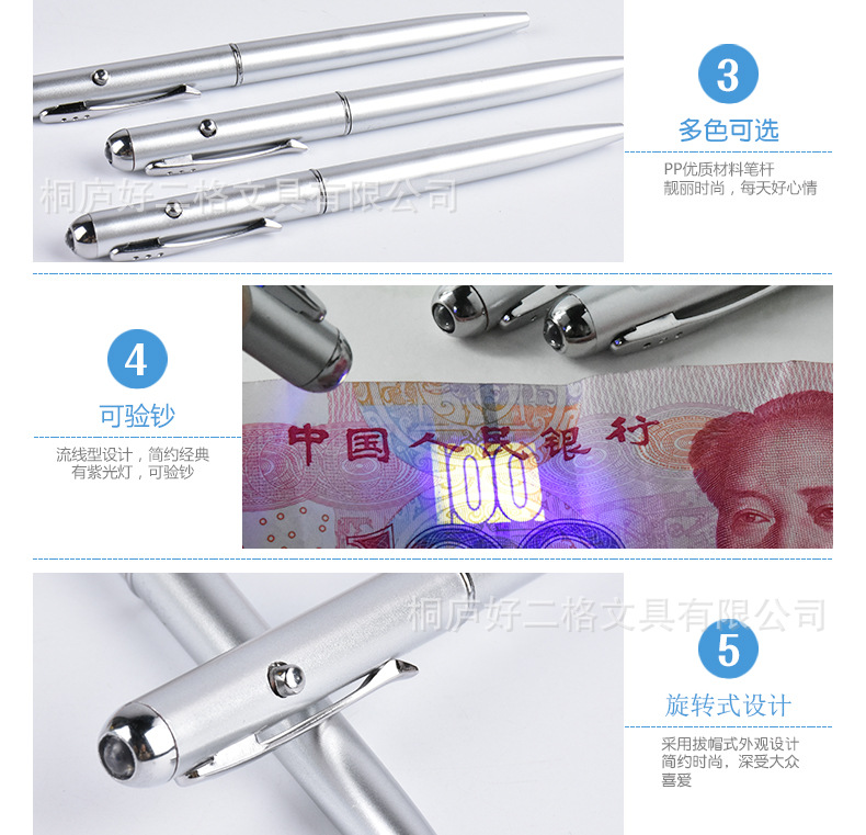 推荐理由:新款厂家直供uv隐形灯笔紫光灯广告圆珠笔银色LED灯隐形笔批发UV