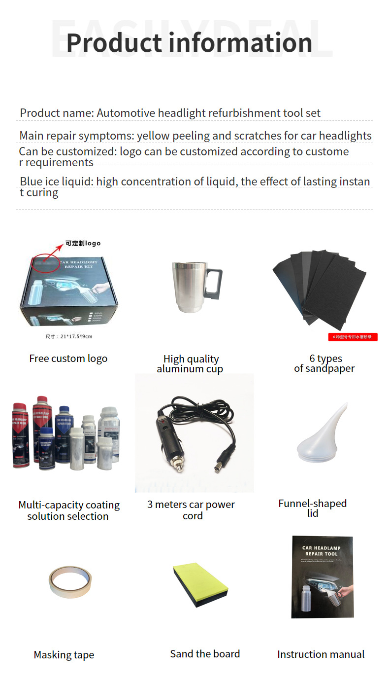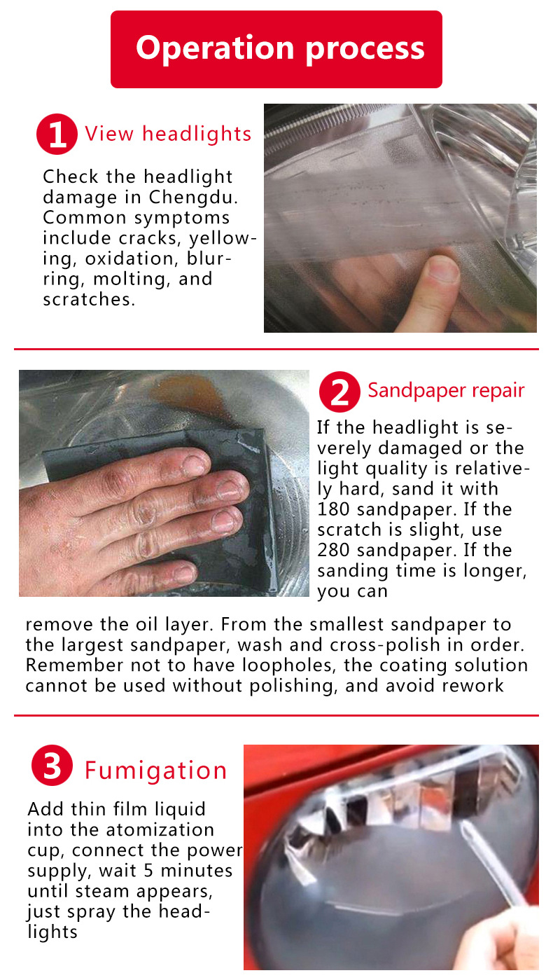 爆款汽车大灯翻新修复工具套装 前照灯翻新加热雾化液 镀膜蓝冰液