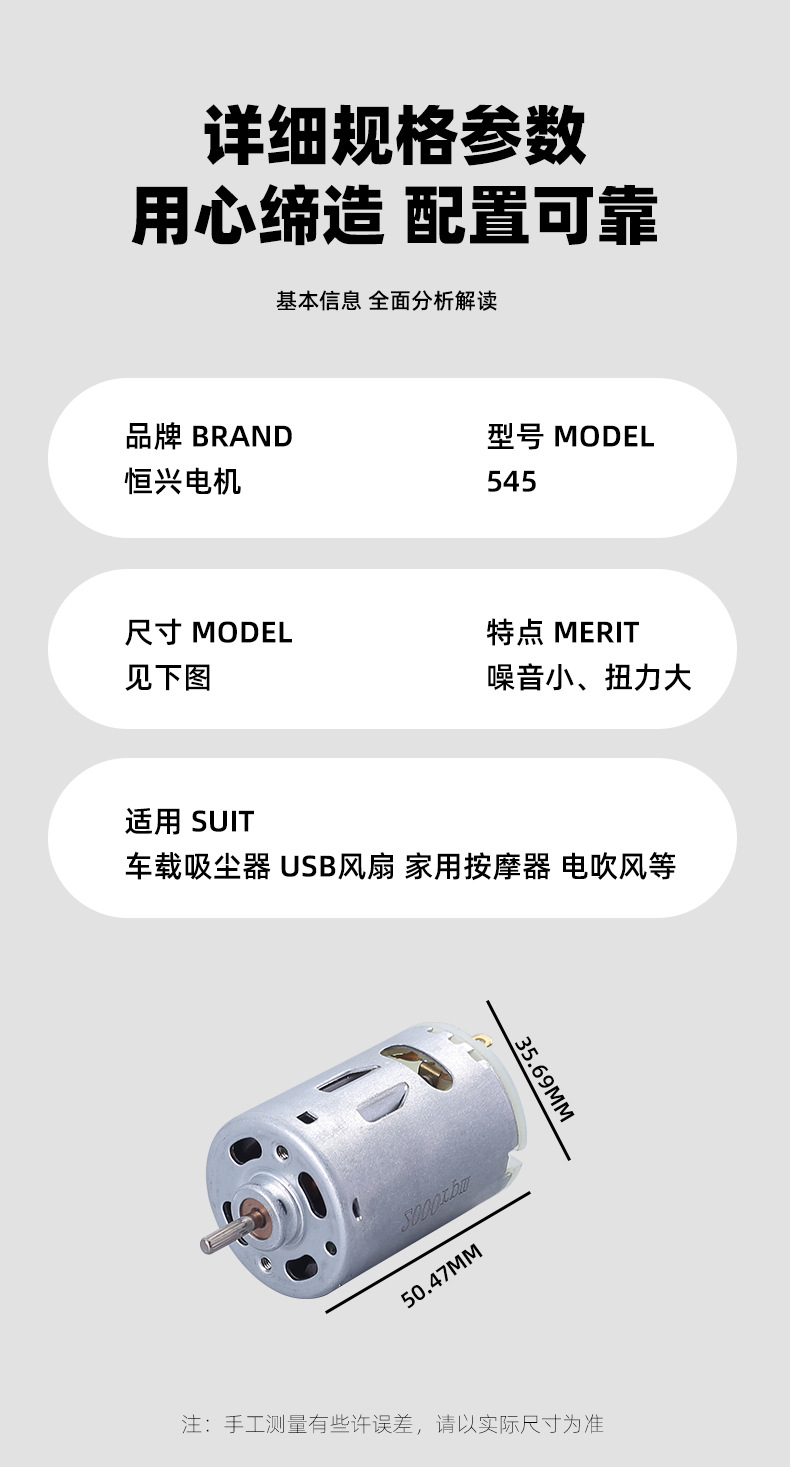 推荐理由:545车载吸尘器小型电机 大扭力高速直流风扇马达 电吹风微型电机