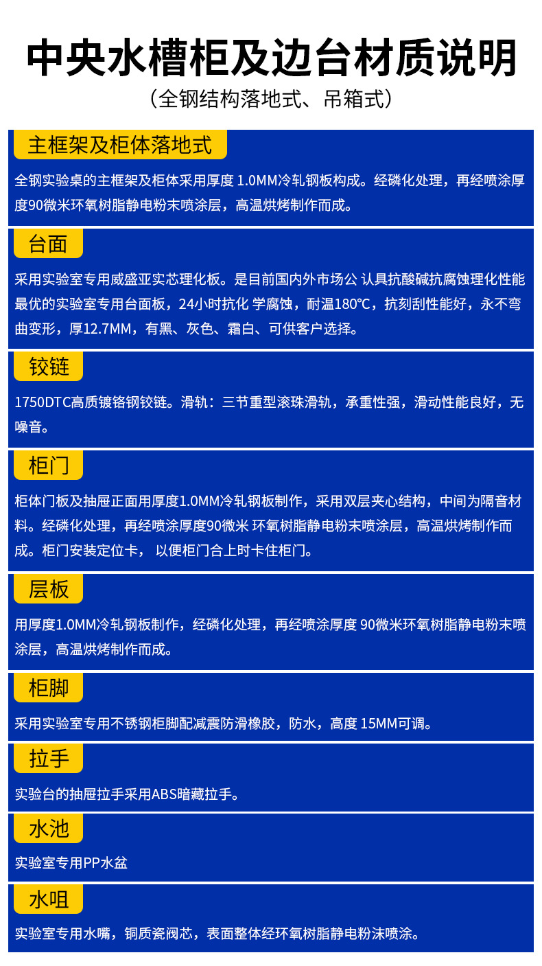 试验台试剂架试验边台桌子通风柜中央台全钢洗手水槽台钢木实验台