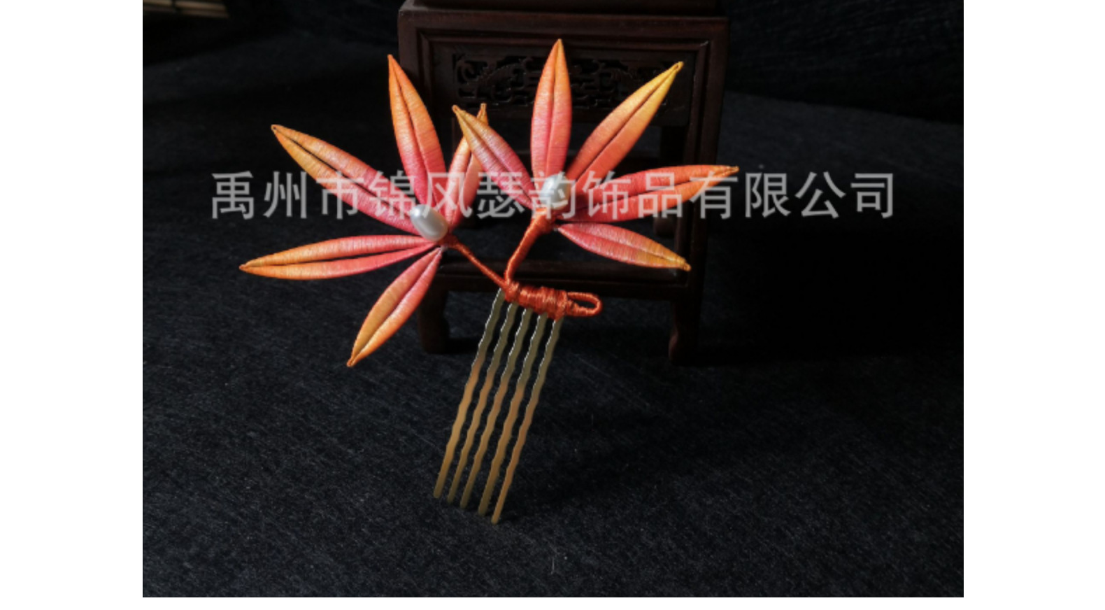 渐变枫叶缠花发梳古风发饰发簪汉服发钗复古国风插梳头饰