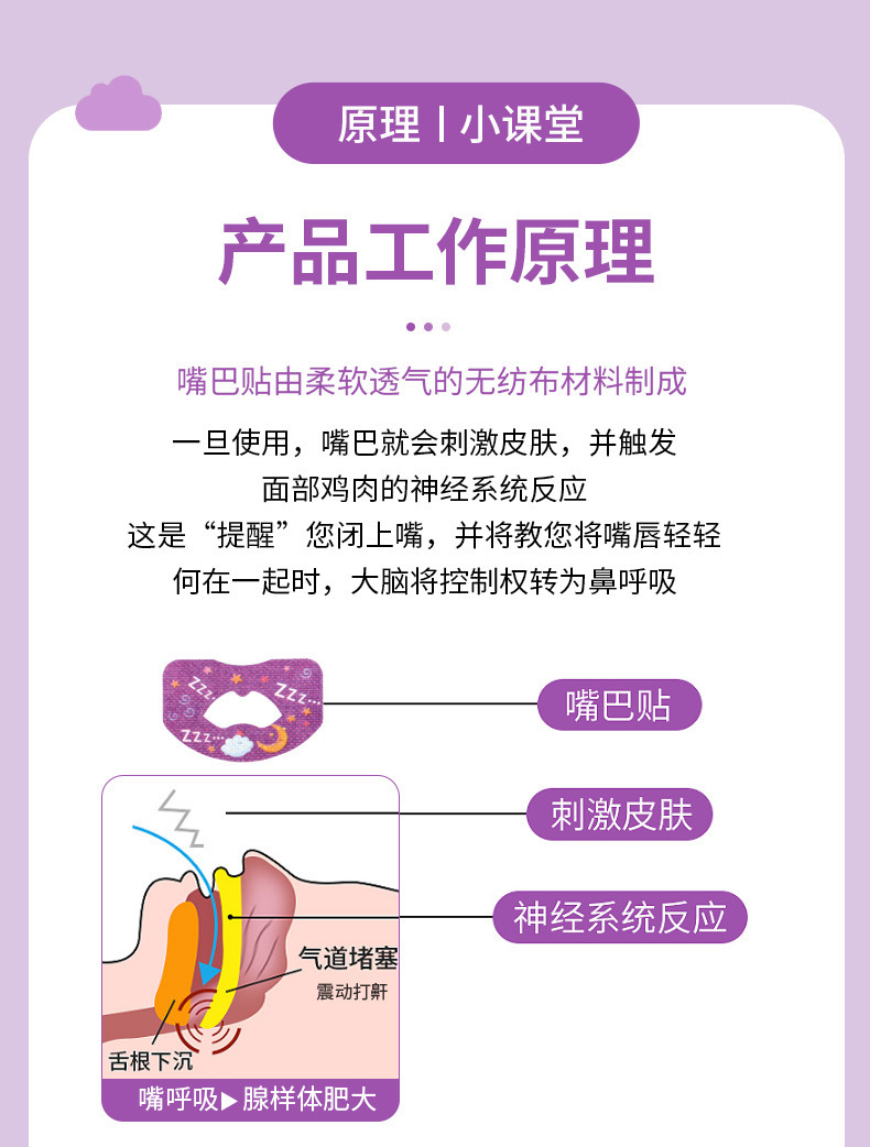 嘴唇闭合贴闭嘴贴张嘴睡觉封口贴儿童闭口贴止鼾呼吸矫正贴封嘴贴
