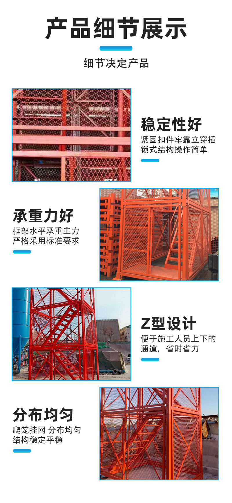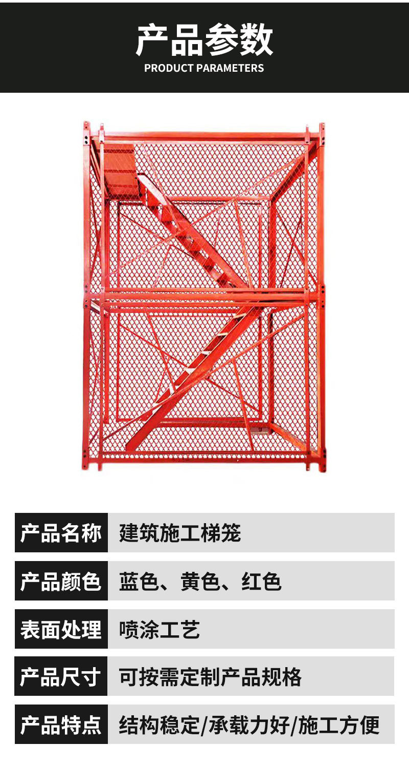 方管安全梯笼主要用于高速公路、铁路、地铁、隧道、水利工程、房地产基抗等的主体工程建设的工程施工,本产品具有承载力强、结构稳定、运输方便、安装快捷、适用范围广等特点。
