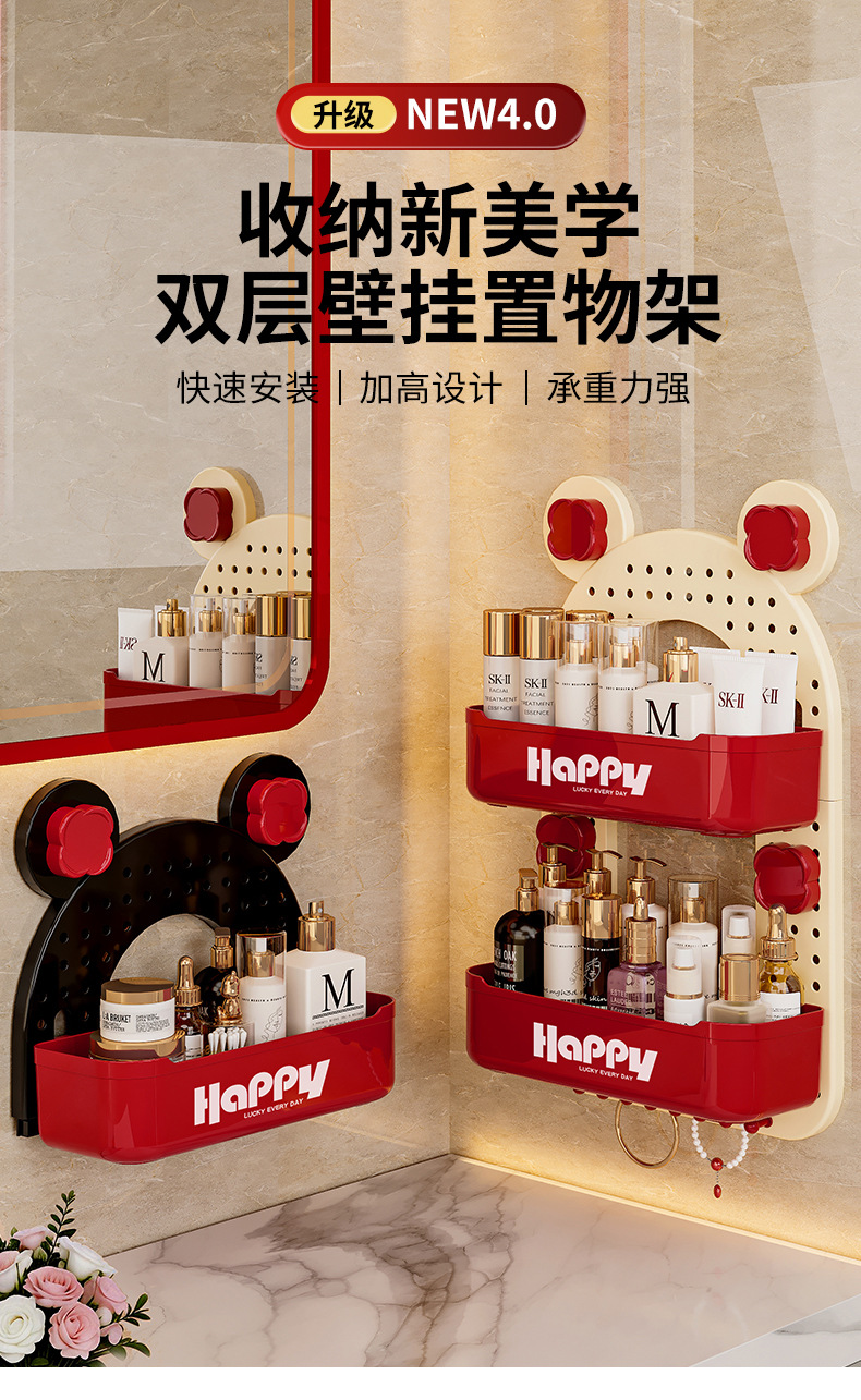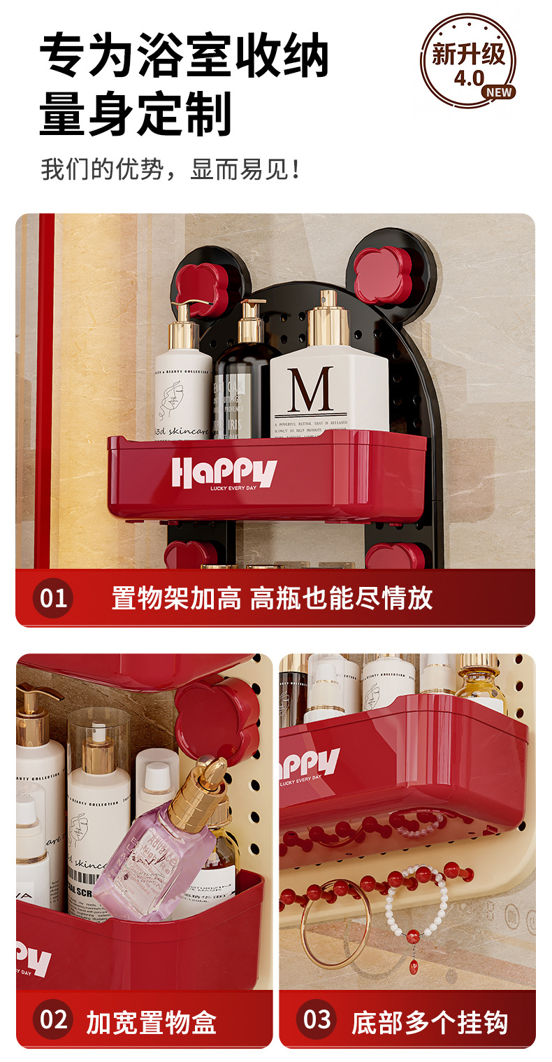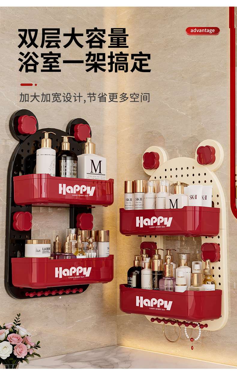 浴室洞洞板壁挂式收纳架墙面免打孔无痕化妆品置物架洗漱台整理架