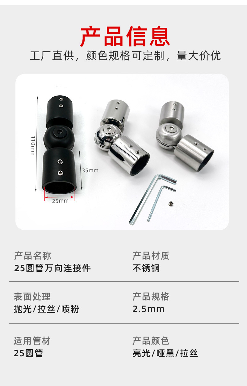 25圆管连接件 304不锈钢淋浴房拉杆配件玻璃固定件卫浴五金配件,批发价,价格:14,厂家直销,25圆管连接件 304不锈钢淋浴房拉杆配件玻璃固定件卫浴五金配件,免费拿样。