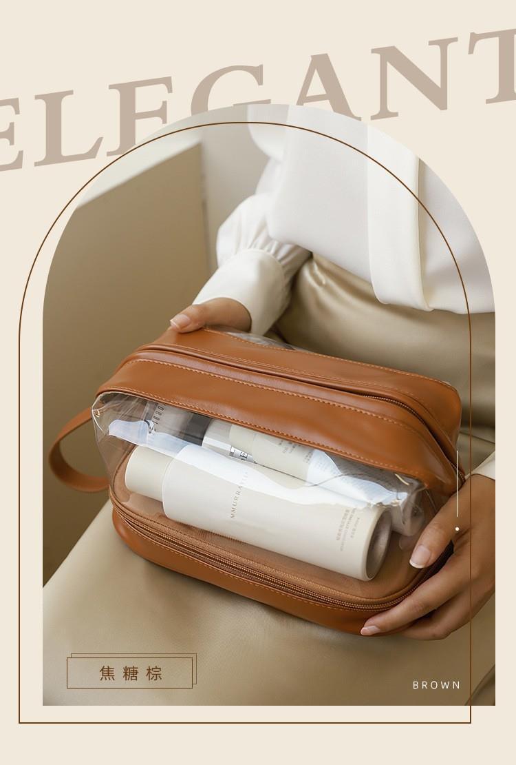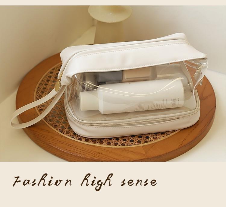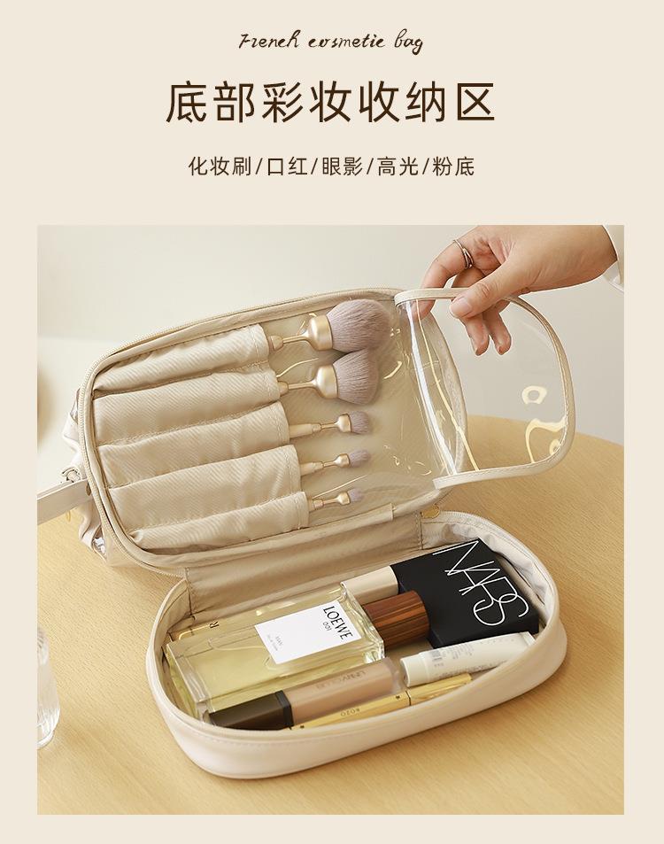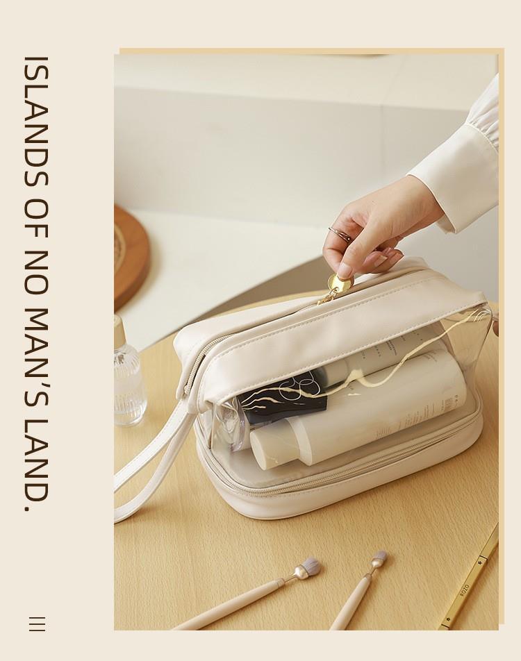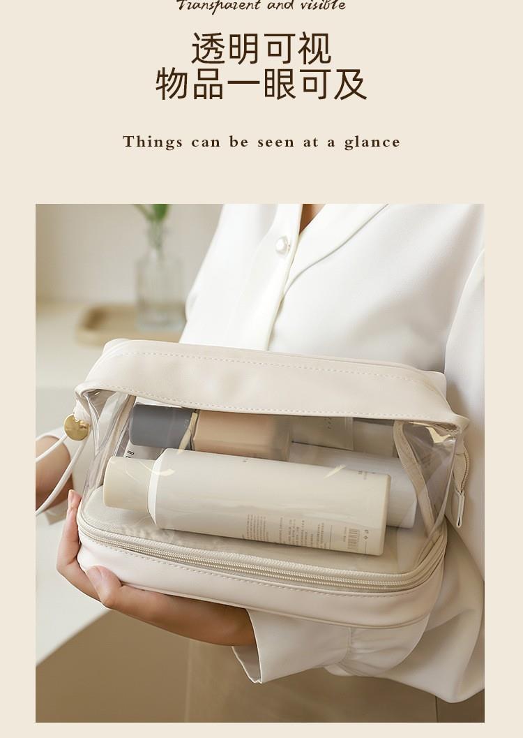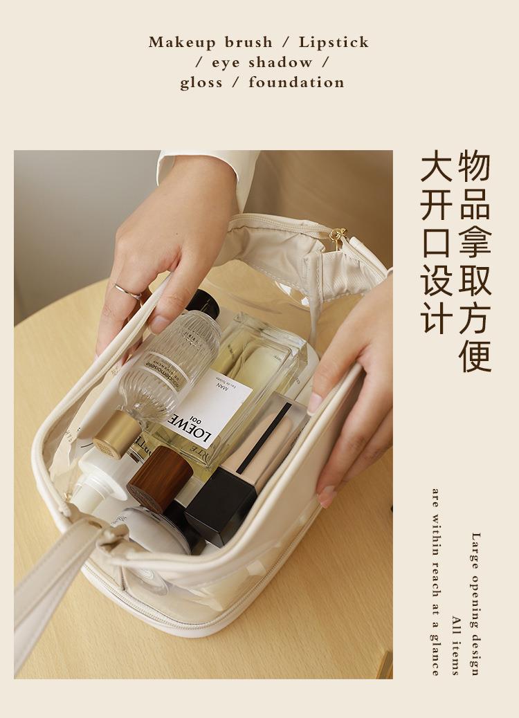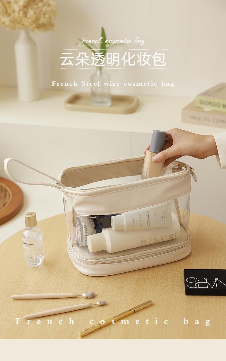 批发化妆收纳包简约高颜值大容量女便携式双层透明TPU云朵化妆包