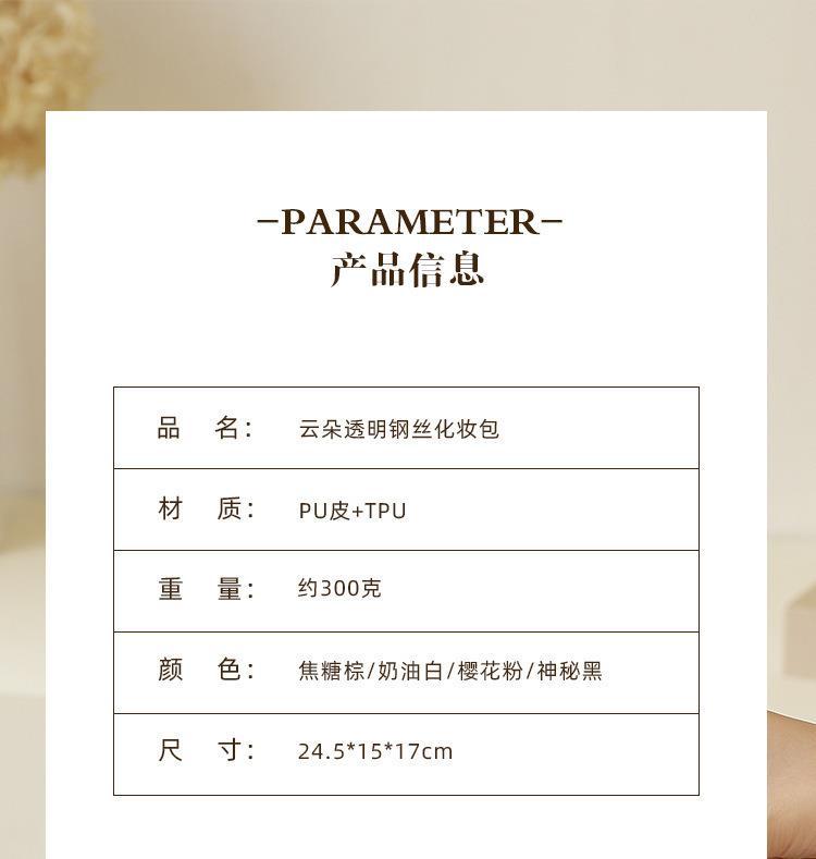 批发化妆收纳包简约高颜值大容量女便携式双层透明TPU云朵化妆包,批发价,价格:16,厂家直销,批发化妆收纳包简约高颜值大容量女便携式双层透明TPU云朵化妆包,免费拿样。
