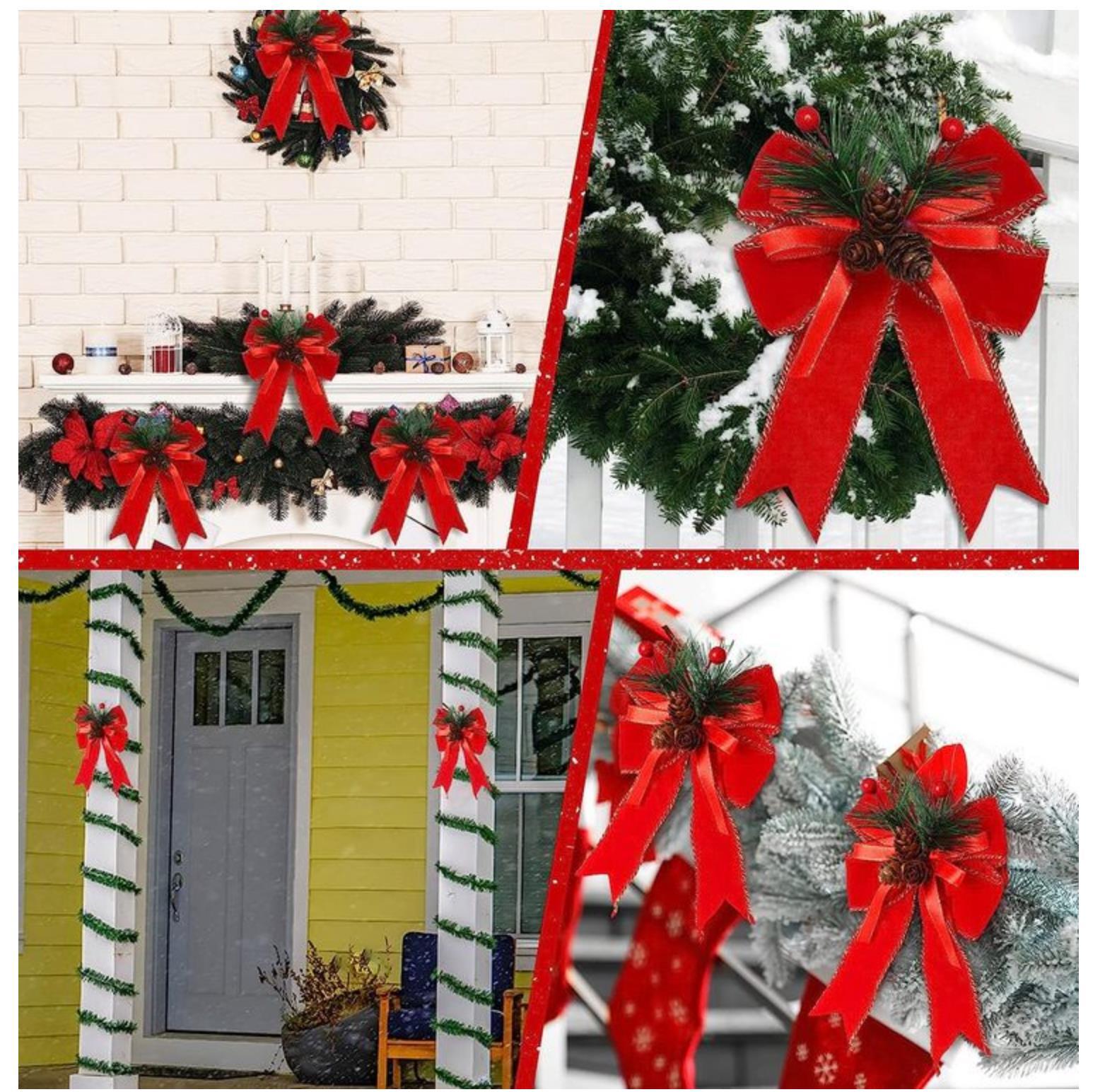 亚马逊热卖圣诞节装饰用品红色绒布圣诞蝴蝶结家居装饰节日挂饰品