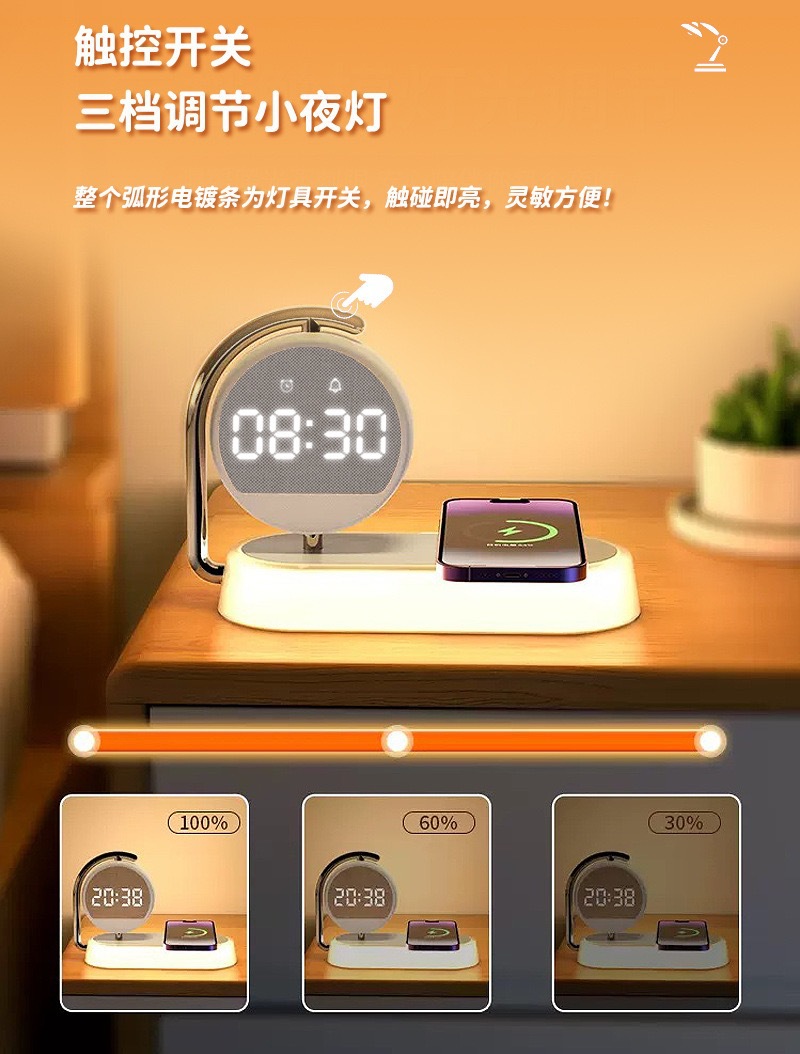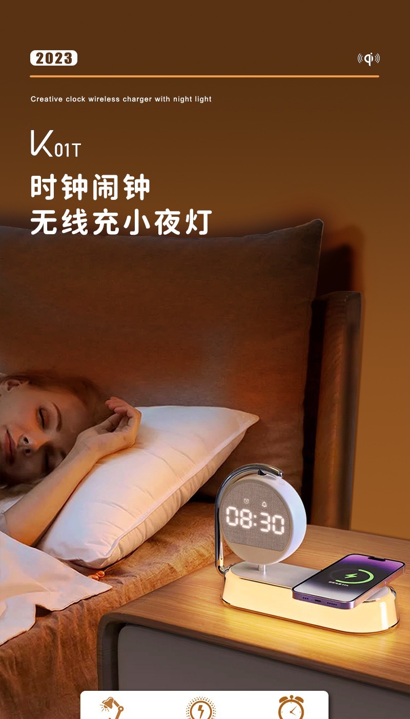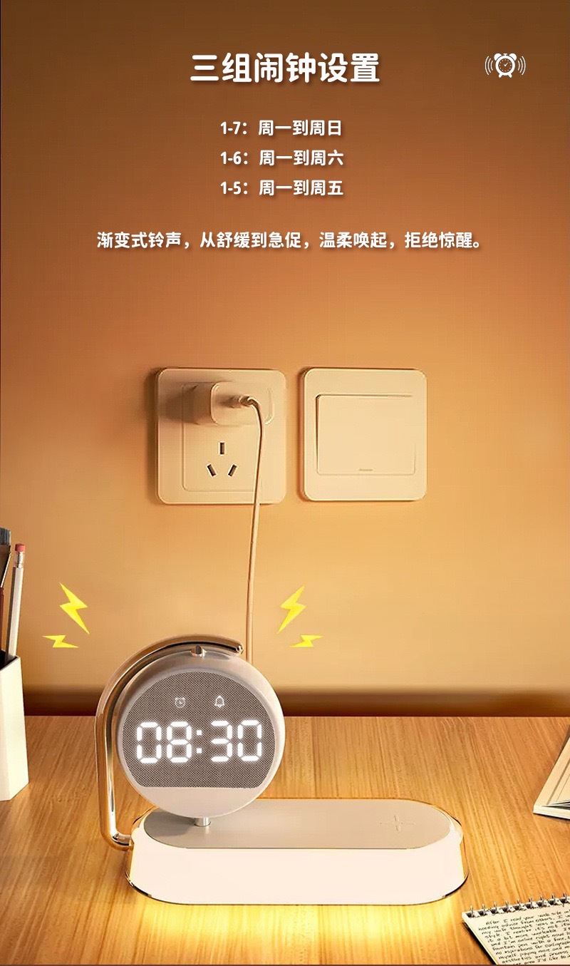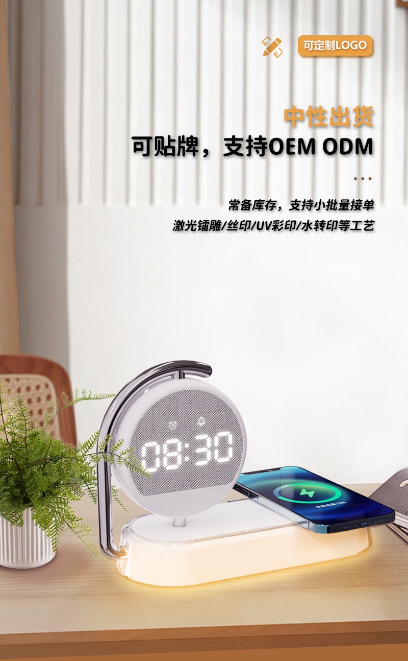 • 新品三合一无线充电卧室床头小夜灯数码时钟闹钟商务礼品LOGO印制