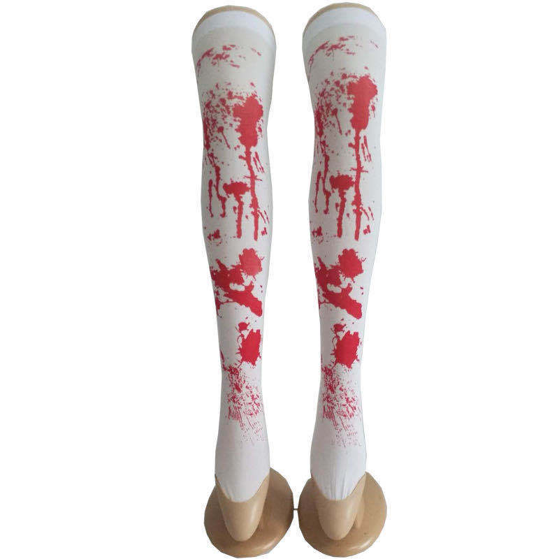 万圣节血袜 Cosplay派对舞会角色扮演鬼节血迹印刷僵尸流血长筒袜