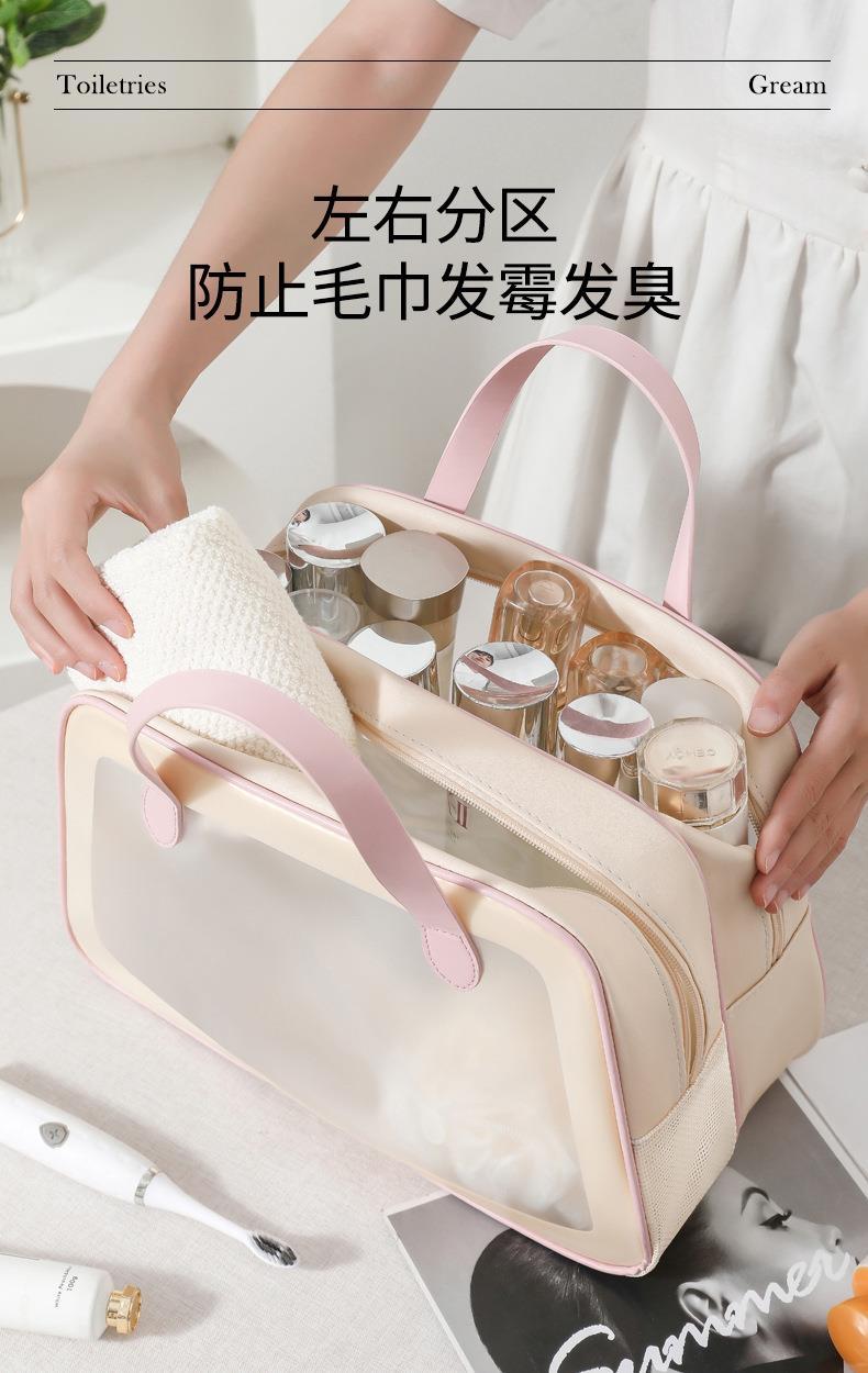 新款加厚干湿分离化妆包手提便携防水洗漱包大容量化妆洗漱收纳袋