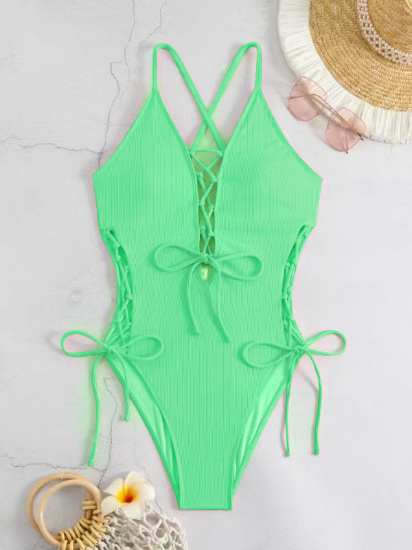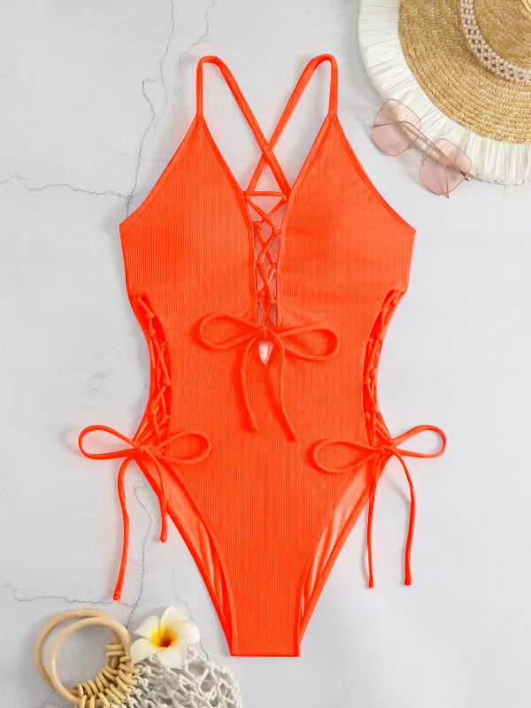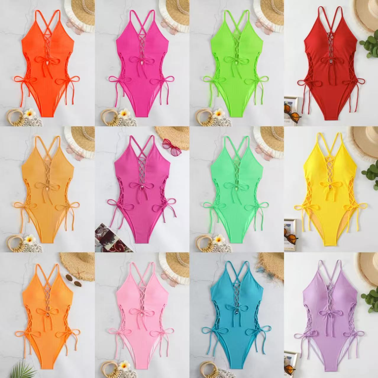 2025欧美泳衣性感露背连体泳衣多色跨境亚马逊交叉绑带泳装比基尼