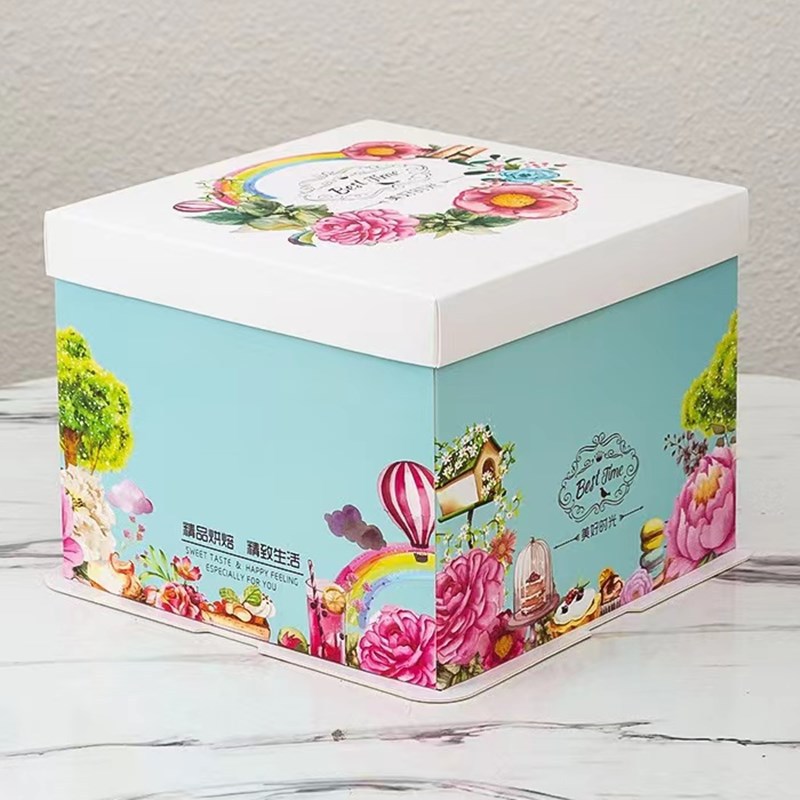 生日蛋糕盒子/4/6/8/10/12/14/16寸方盒手提方形白卡包装盒烘焙
