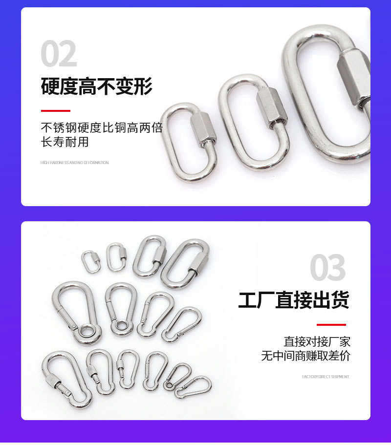 304不锈钢弹簧扣 登山扣葫芦扣挂钩安全扣保险扣简易锁钩厂家批发
