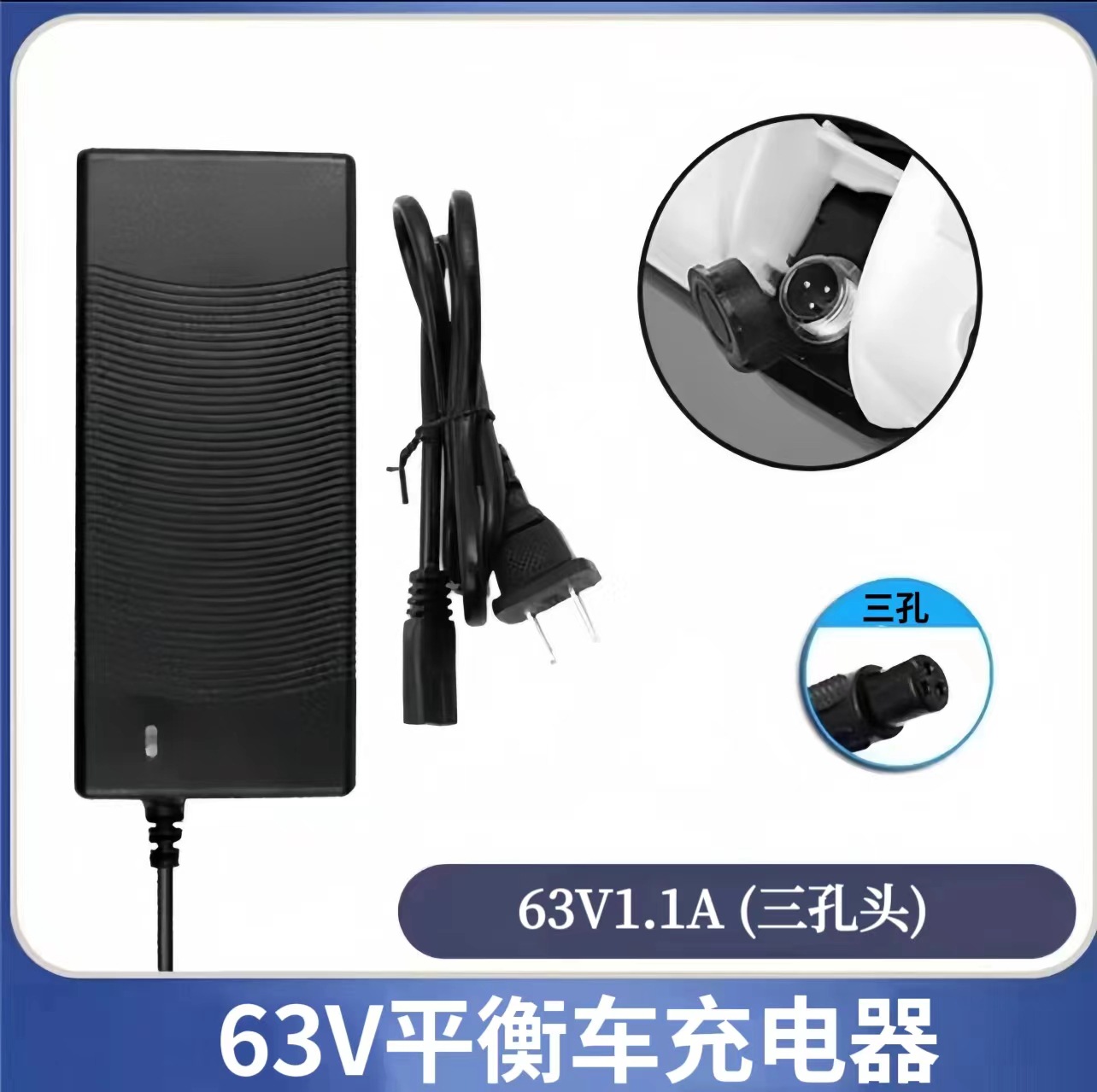 63v平衡车充电器小米9号平衡车锂电池充电器三孔四孔三插批发九号