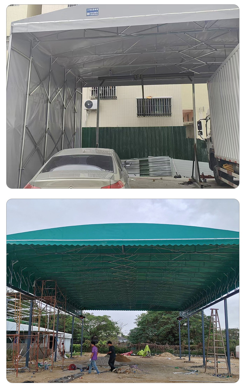 户外挡雨电动推拉帐篷定制过道遮阳棚大型篮球场电动伸缩遮雨棚