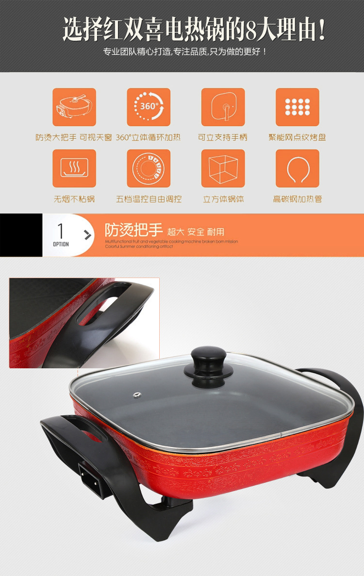 韩式多功能电火锅电饭煲红双喜四方锅家用电炒锅不沾电热锅,批发价,价格:28,厂家直销,韩式多功能电火锅电饭煲红双喜四方锅家用电炒锅不沾电热锅,免费拿样。