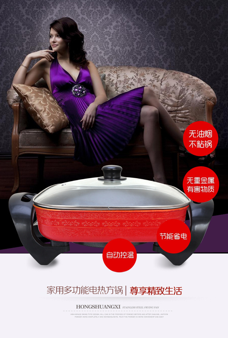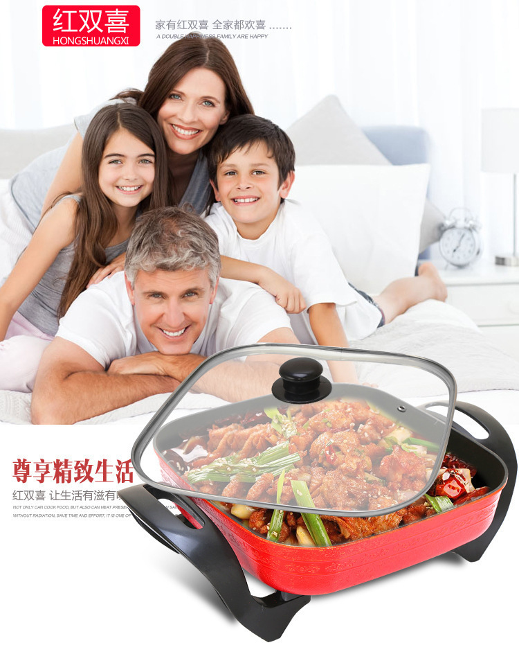 韩式多功能电火锅电饭煲红双喜四方锅家用电炒锅不沾电热锅