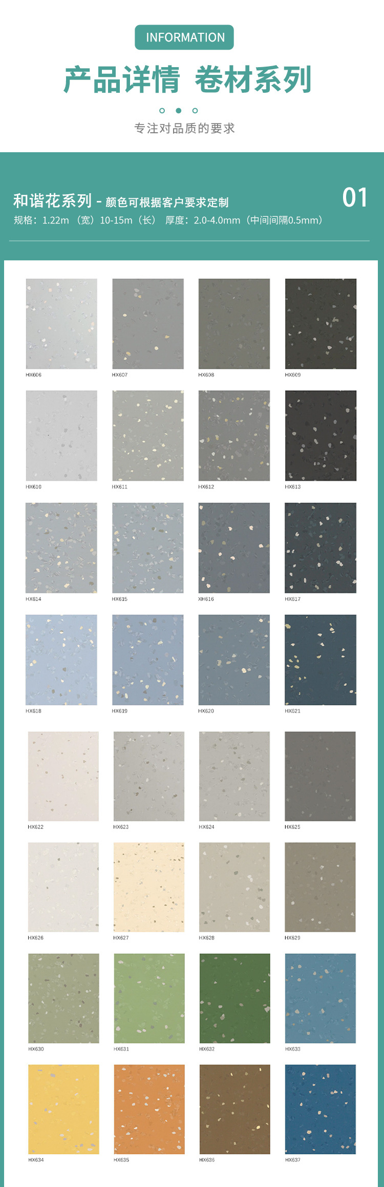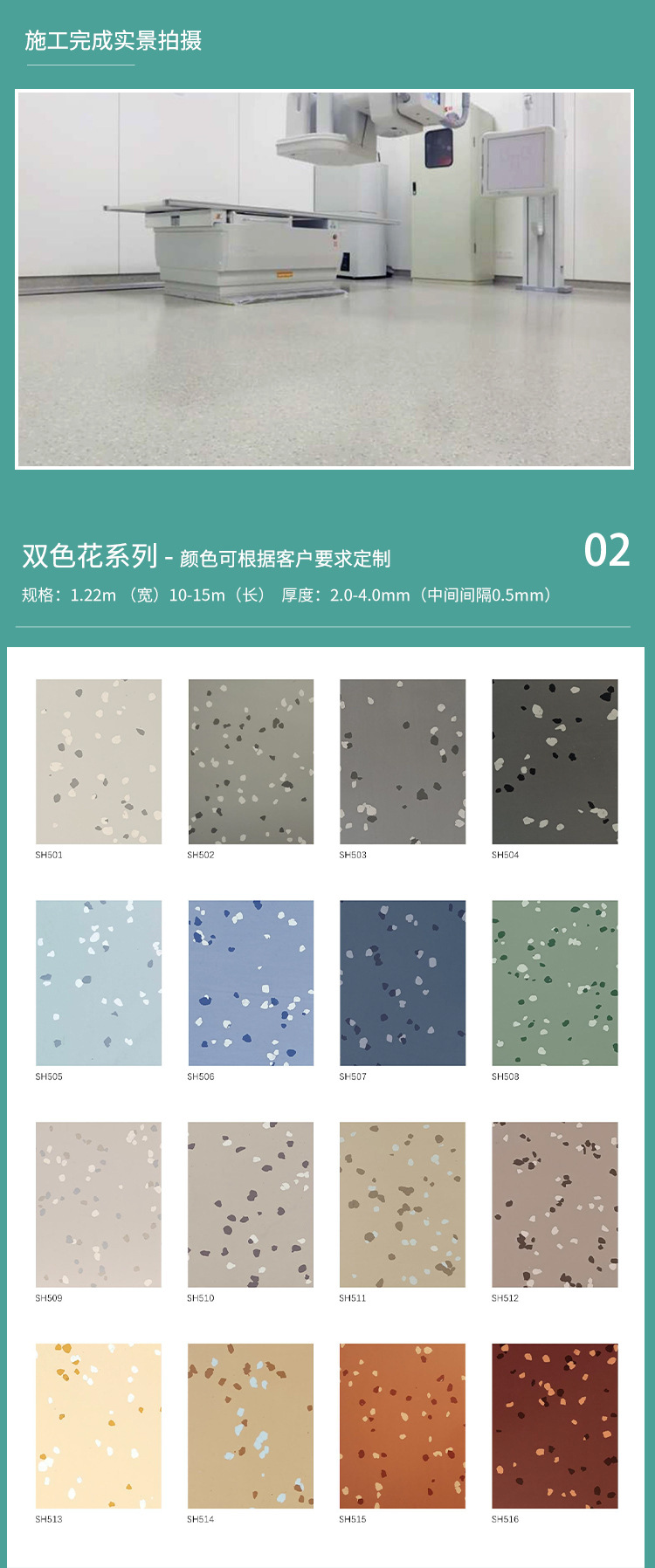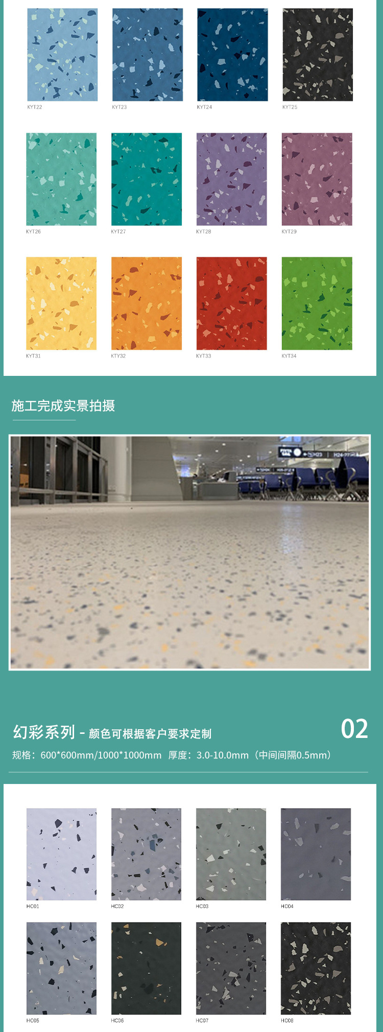 橡胶弹性地板锤击纹小碎花单色平面皮纹医院场馆工业电厂地板