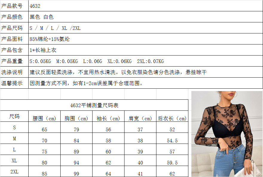 2025跨境蕾丝上衣 性感镂空衫女装 性感透视内搭长袖打底衫现货,批发价,价格:19,厂家直销,2025跨境蕾丝上衣 性感镂空衫女装 性感透视内搭长袖打底衫现货,免费拿样。