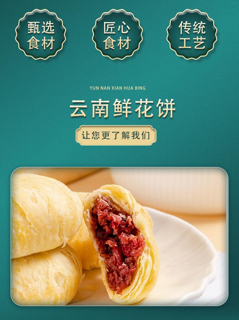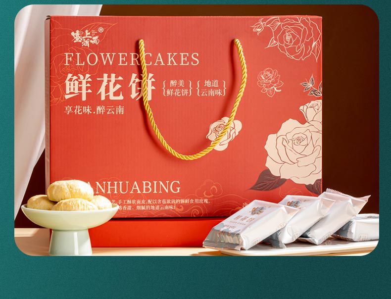 云南鲜花饼 玫瑰鲜花饼礼盒饼玫瑰饼子鲜花玫瑰花瓣糕点代发批发