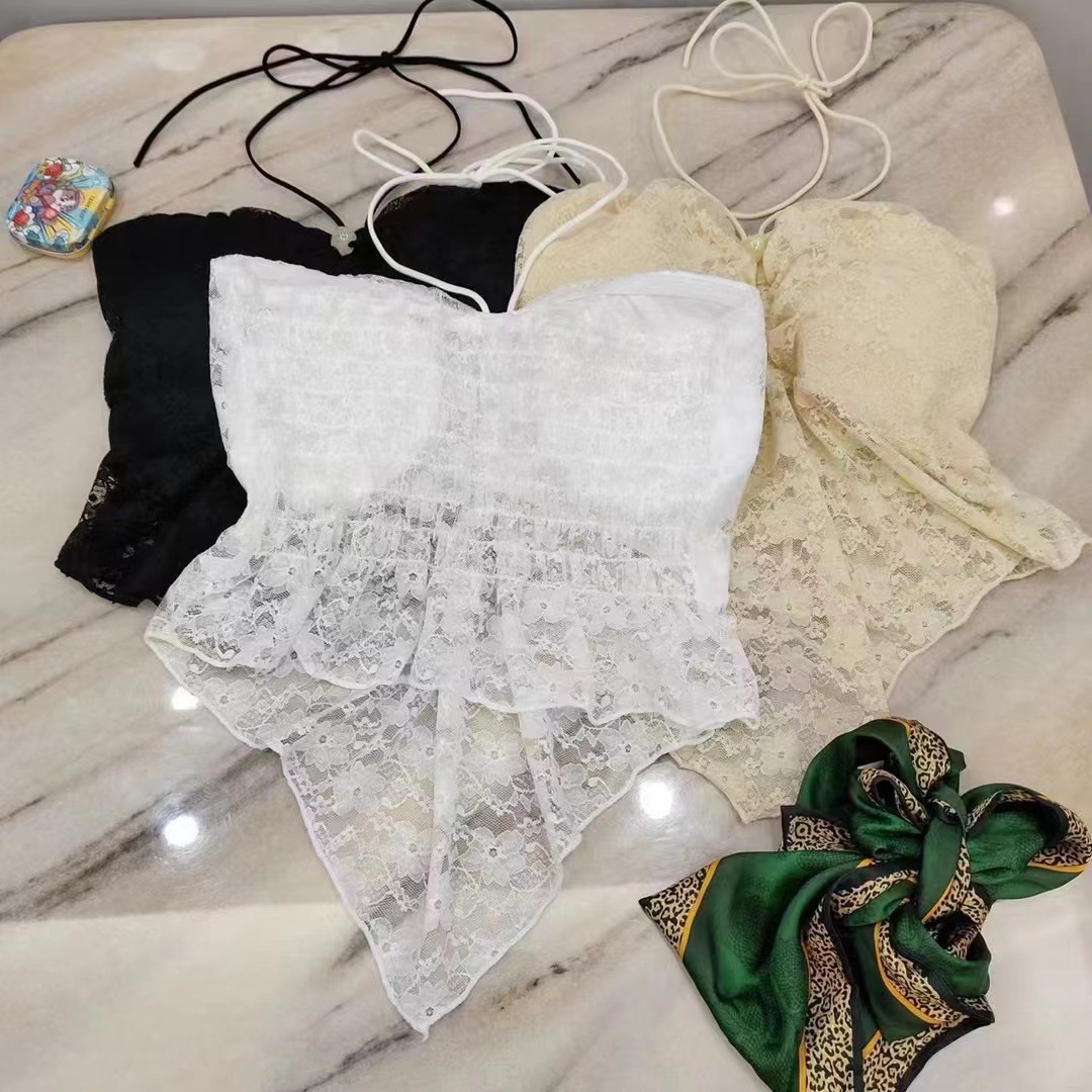 纯欲性感挂脖抹胸背心女带胸垫法式浪漫性感露背气质镂空蕾丝上衣,批发价,价格:9.8,厂家直销,纯欲性感挂脖抹胸背心女带胸垫法式浪漫性感露背气质镂空蕾丝上衣,免费拿样。