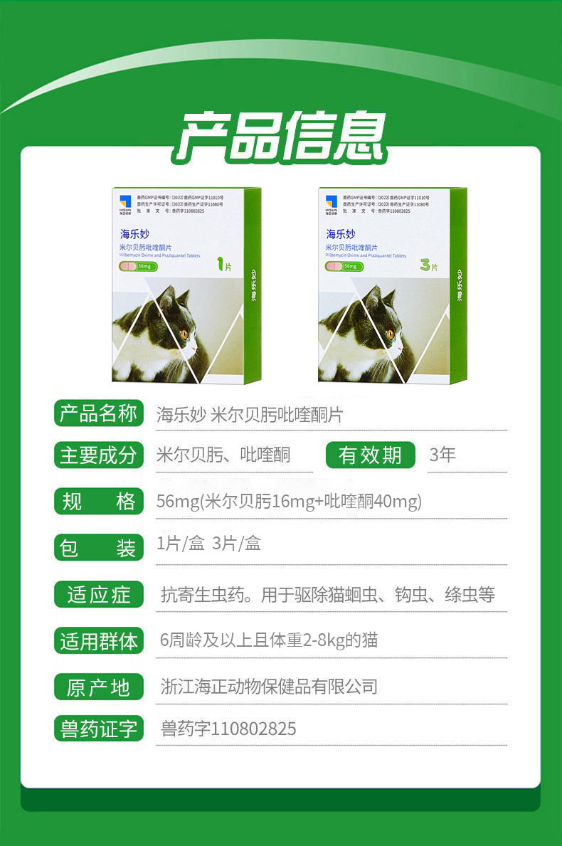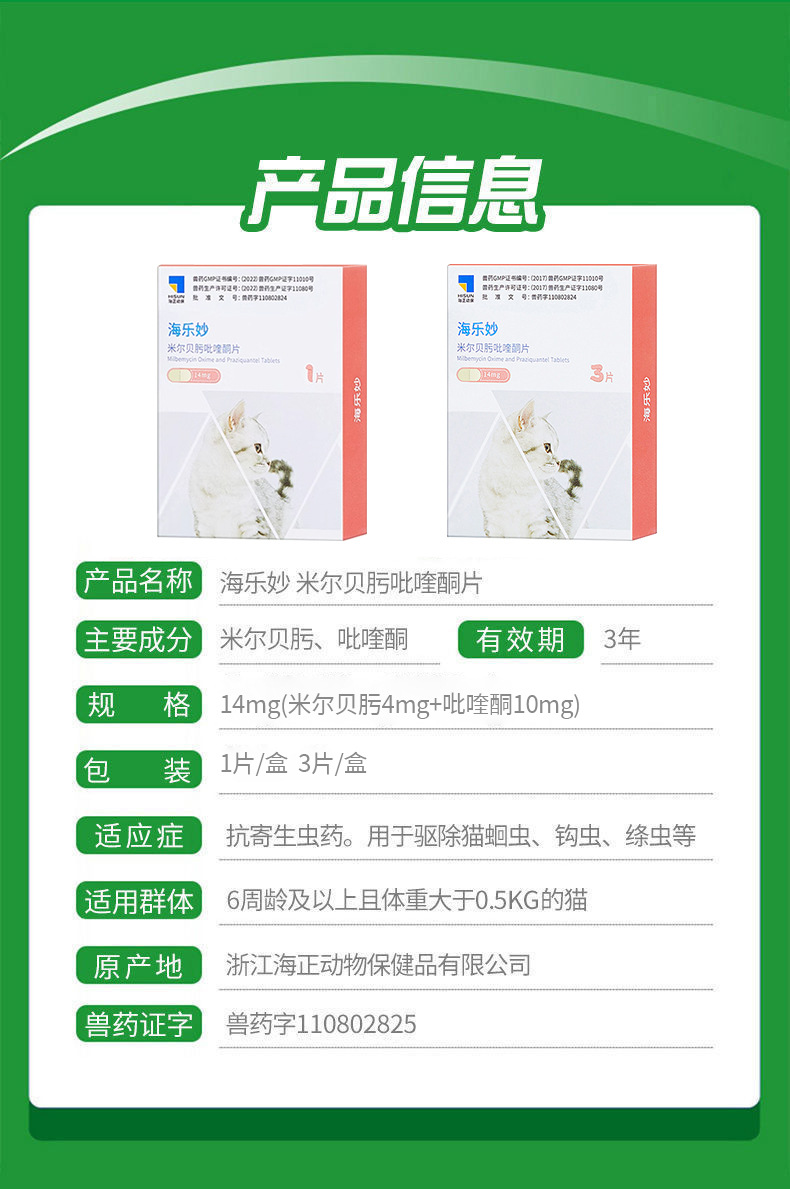海乐妙乐宠/海乐正14mg56mg猫咪狗狗体内宠物妙虫 驱虫药单粒整盒