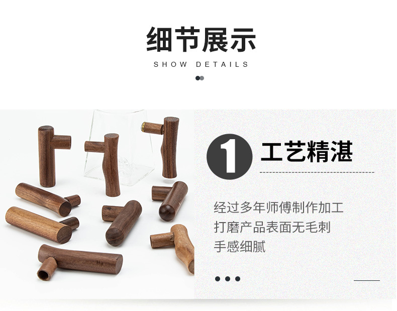 推荐理由:实木拉手是家居五金中的优质选择,兼具美观性、实用性和安全性,表面光滑无毛刺,经过多道打磨工序,触感舒适温润。• 结构稳固耐用:实心材质制作,含水率控制在8-12%,不易变形开裂适用于衣柜、橱柜、抽屉、