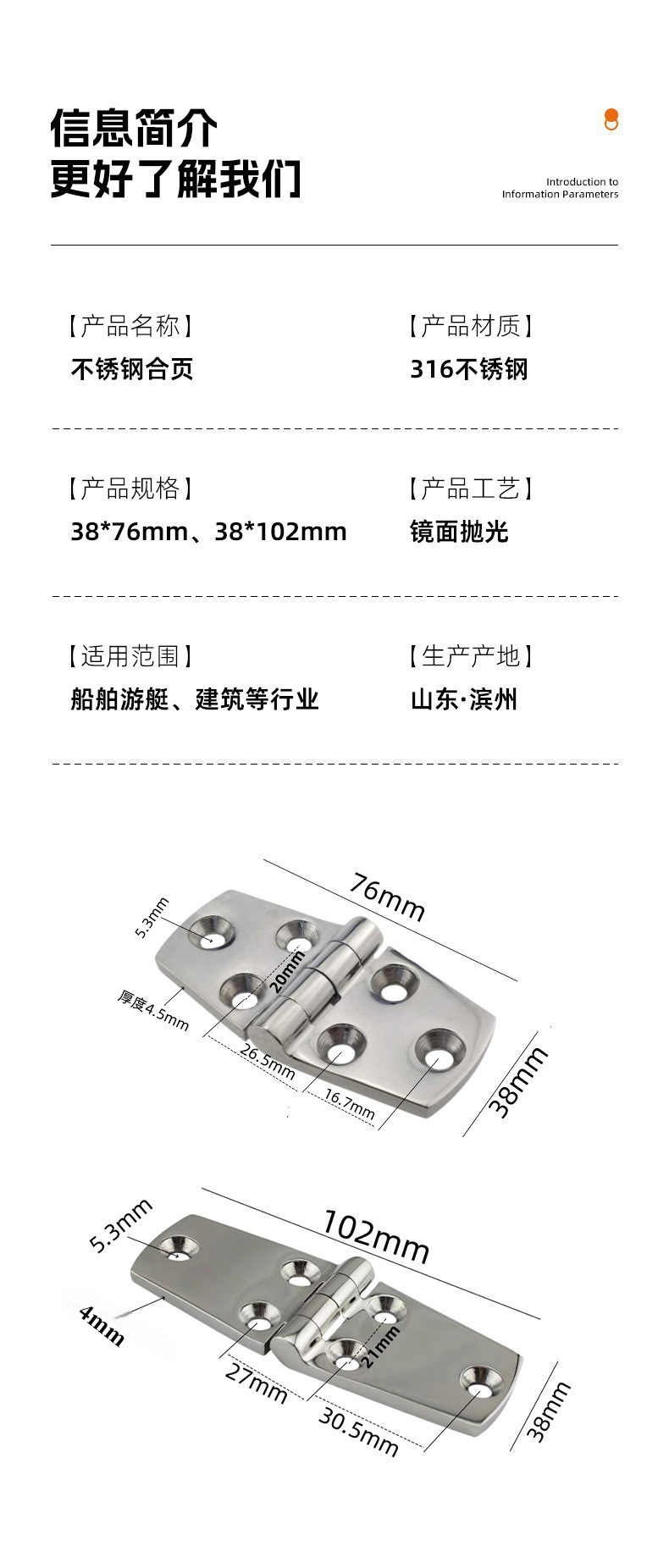 316不锈钢五孔合页铰链 船舶游艇配件 游艇房车折页 舱盖合页