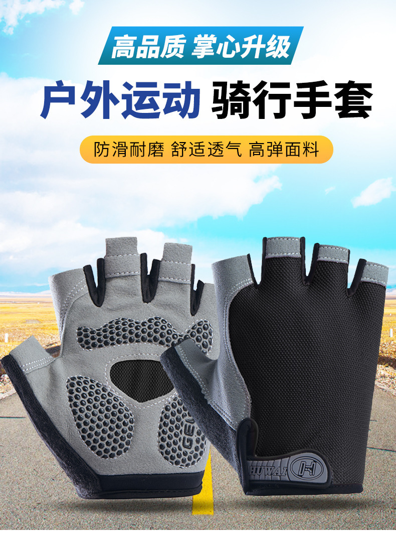 运动半指健身户外骑行登山透气减震防滑吸汗手套防起茧触屏防护