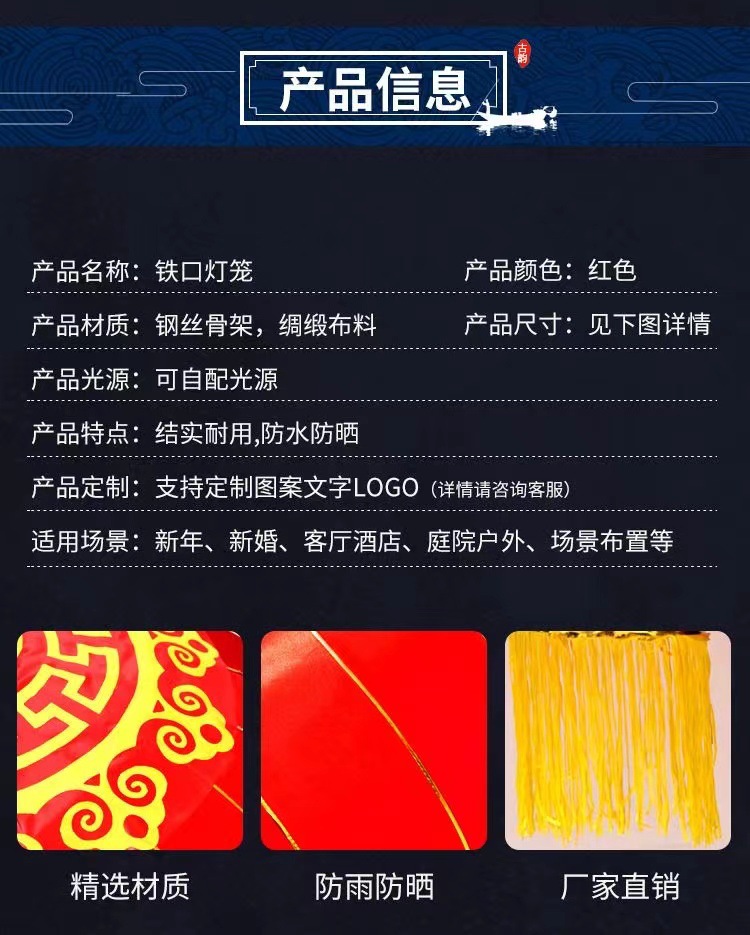 大红灯笼新款中式铁口绸布户外防水防晒大门婚庆灯笼长廊喜庆装饰,批发价,价格:3.9,厂家直销,大红灯笼新款中式铁口绸布户外防水防晒大门婚庆灯笼长廊喜庆装饰,免费拿样。