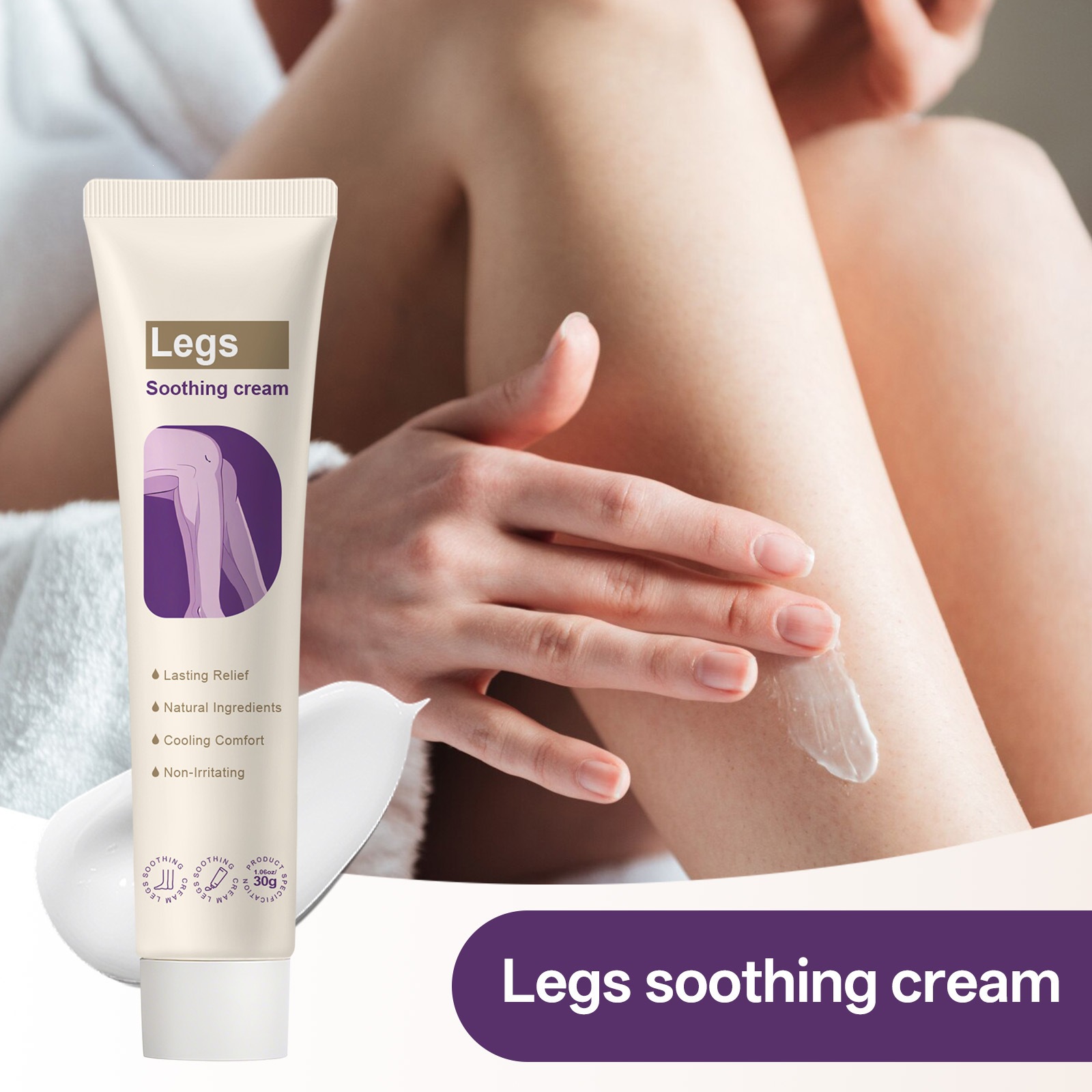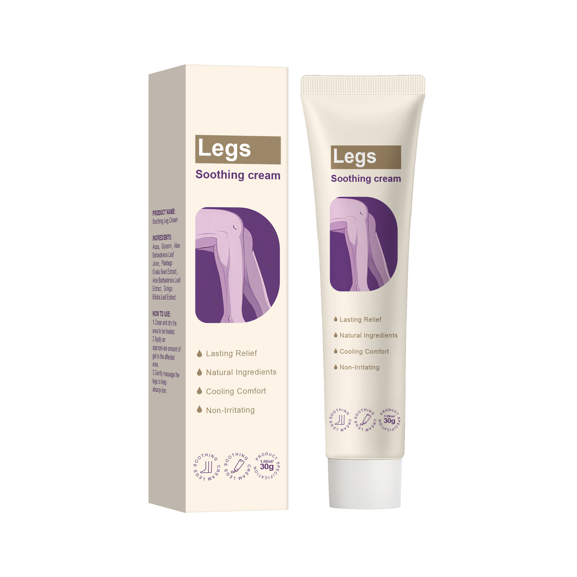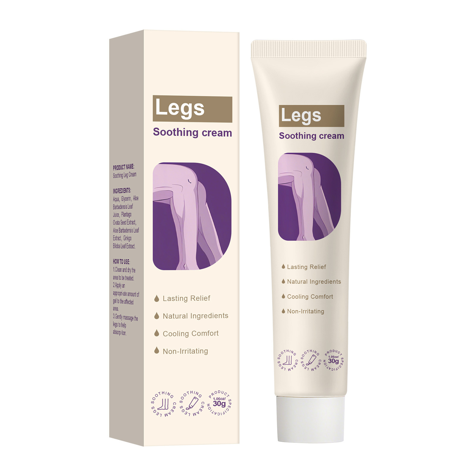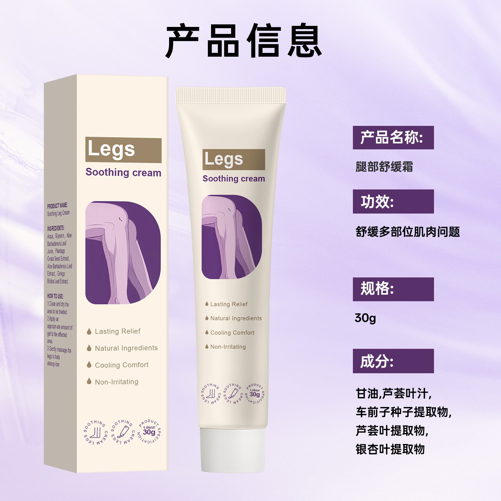 跨境无标腿部护理霜清爽舒缓滋润保湿缓解不适草本配方舒缓霜30g